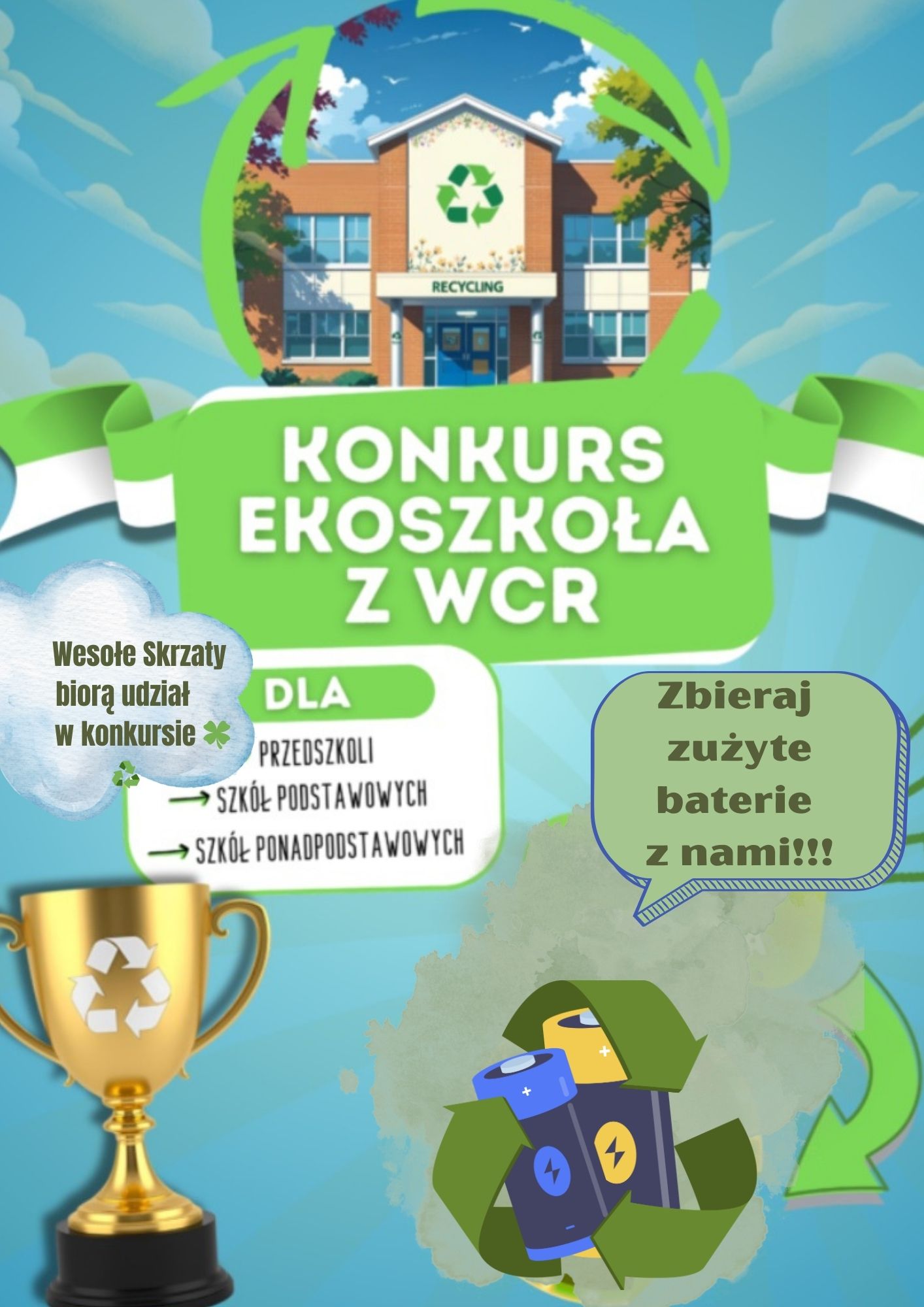 🌿 Nasze przedszkole bierze udział w konkursie ekologicznym organizowanym przez WCR! Podejmujemy wiele działań na rzecz ochrony środowiska, pokazując dzieciom, jak ważne jest dbanie o przyrodę już od najmłodszych lat. 🌍 Jednym z naszych działań jest zbiórka zużytych baterii. Zachęcamy wszystkich rodziców, dziadków oraz mieszkańców do
