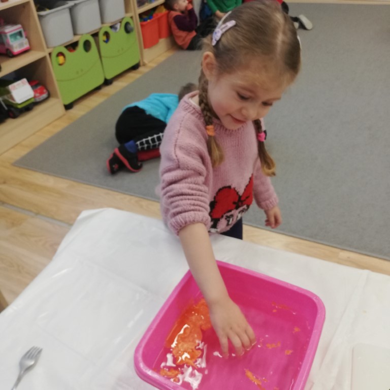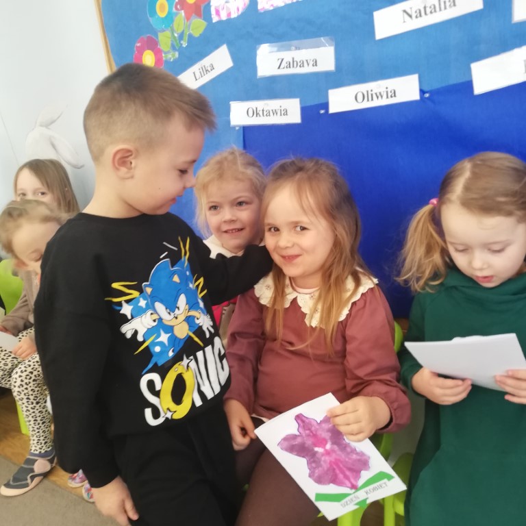 Podczas zajęć dzieci uczyły się, jak ważne są empatia, życzliwość oraz miłe słowa, które budują przyjaźnie i dobre relacje z rówieśnikami. Wspólnie rozmawialiśmy o tym, że nie wolno używać słów wyrażających przemoc wobec innych, ponieważ mogą one ranić i sprawiać przykrość.