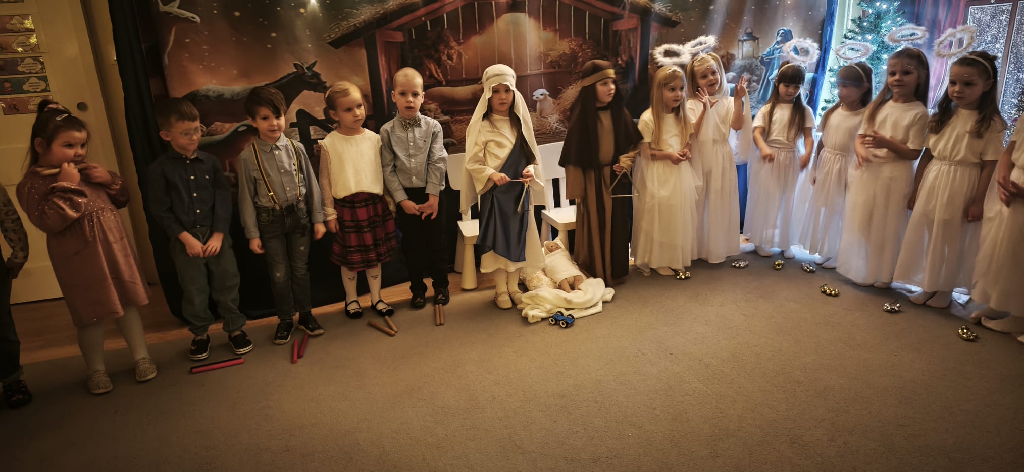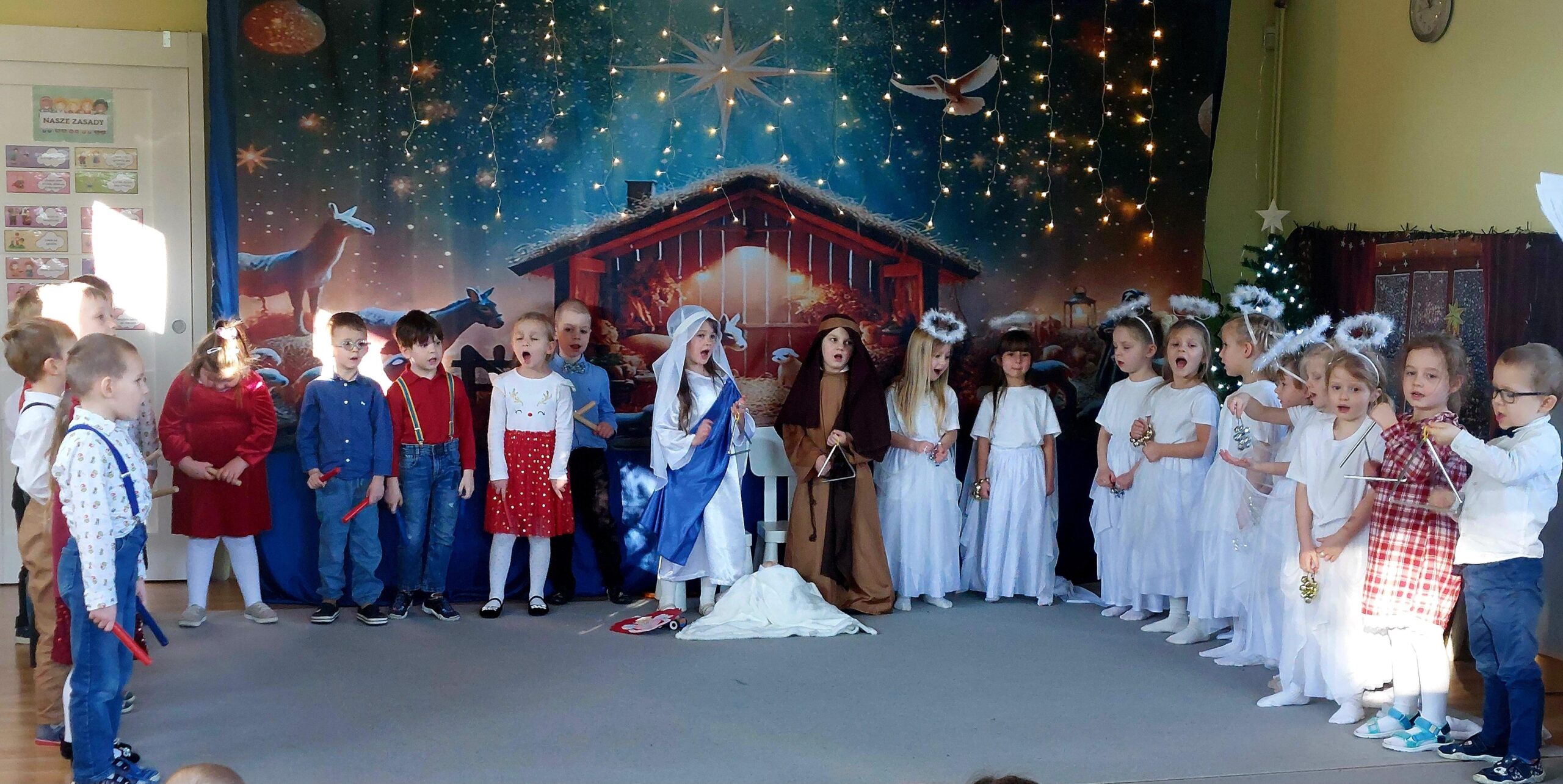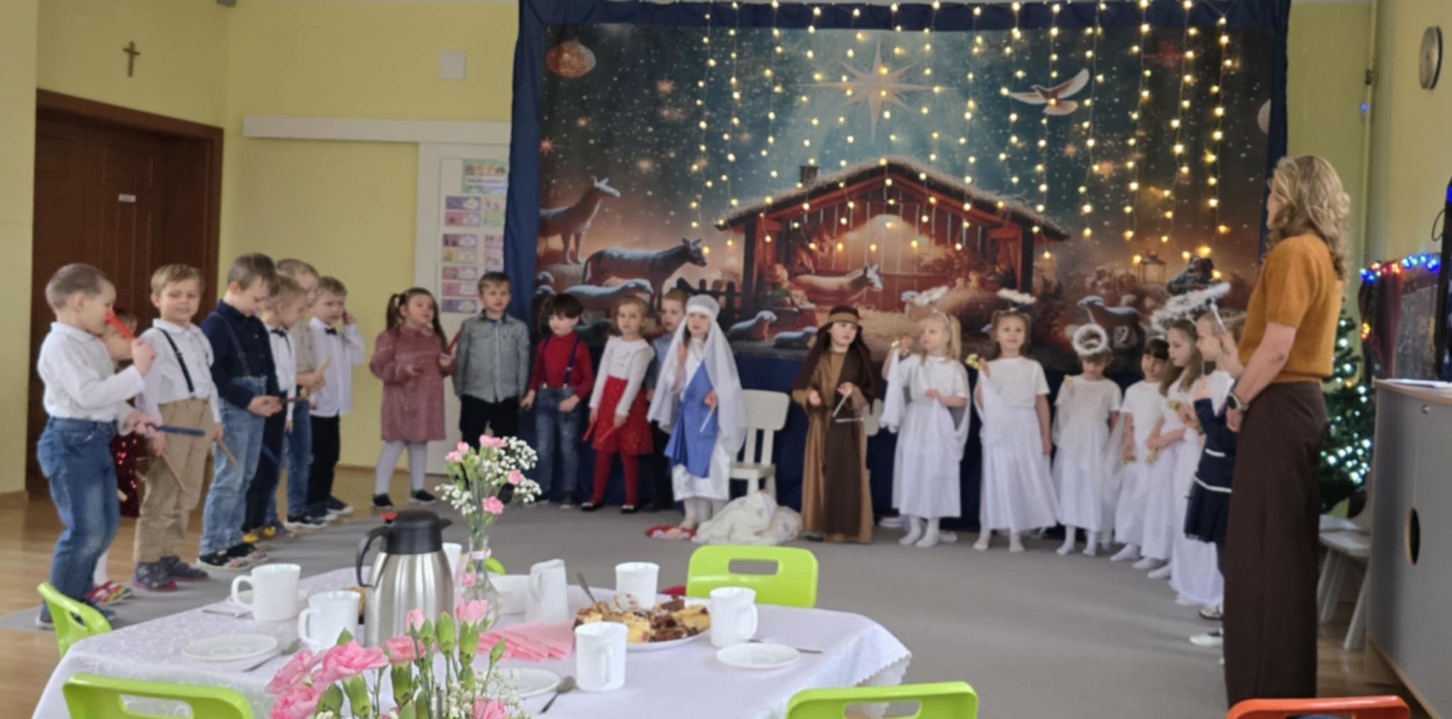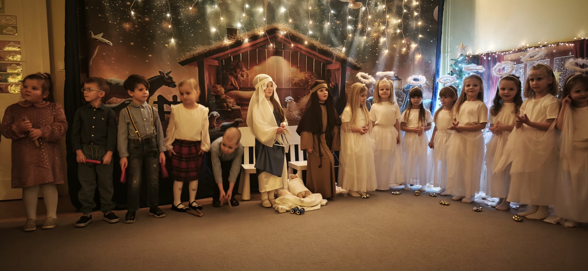 18 grudnia w naszym przedszkolu odbył się uroczysty występ jasełkowy w wykonaniu najstarszej grupy, przygotowany specjalnie dla rodziców. Dzieci z wielkim zaangażowaniem i radością zaprezentowały bożonarodzeniową inscenizację, wcielając się w swoje role i wprowadzając wszystkich w świąteczny nastrój. Piękne stroje, kolędy oraz recytowane kwestie zostały nagrodzone gromkimi brawami.