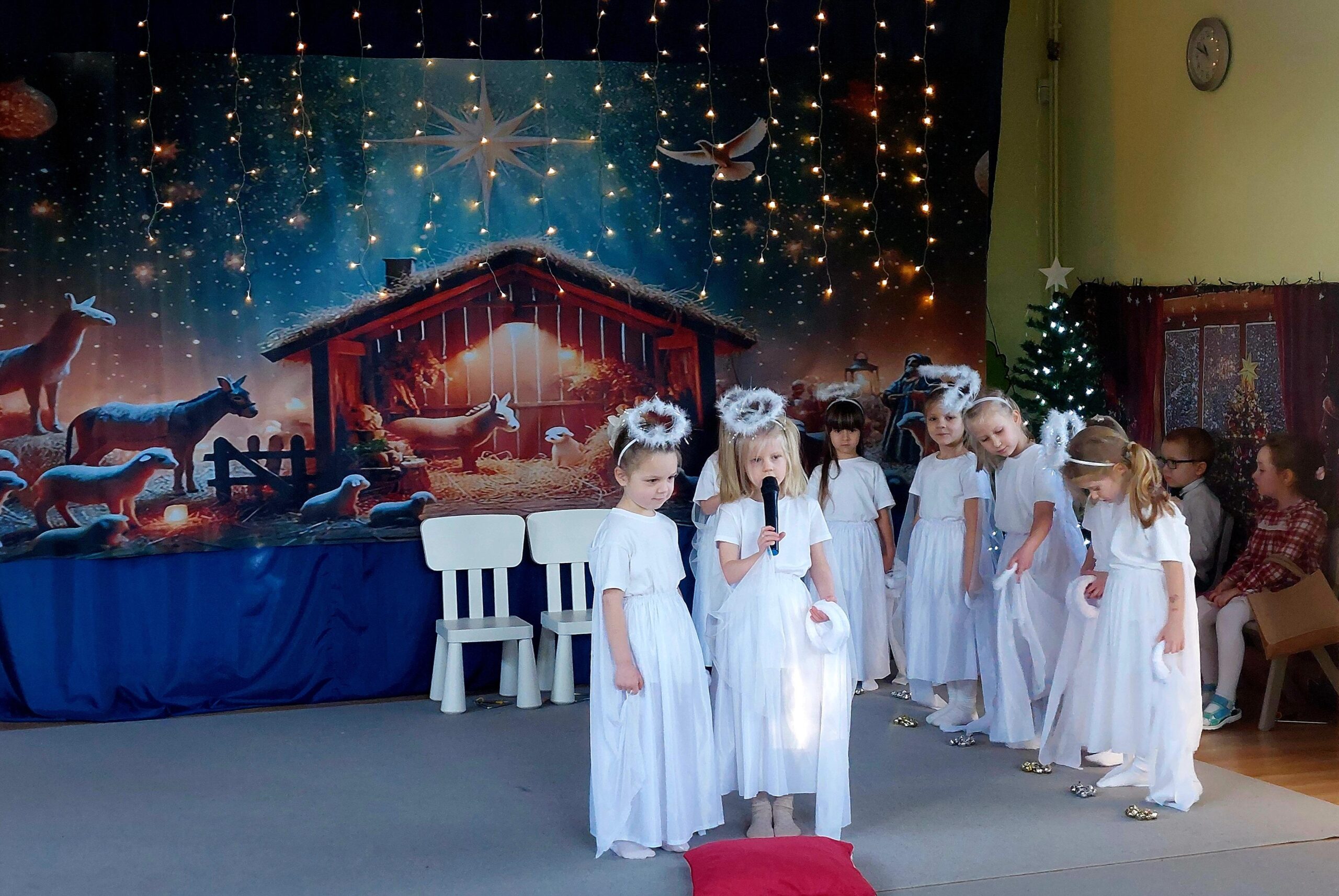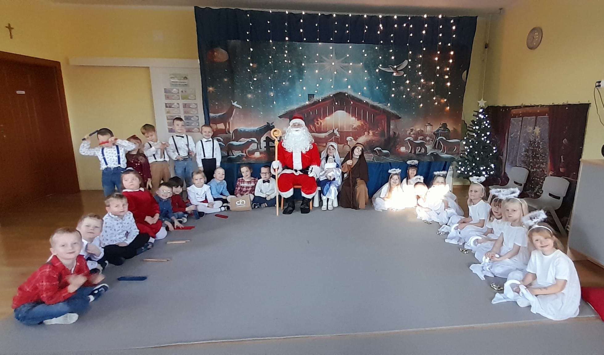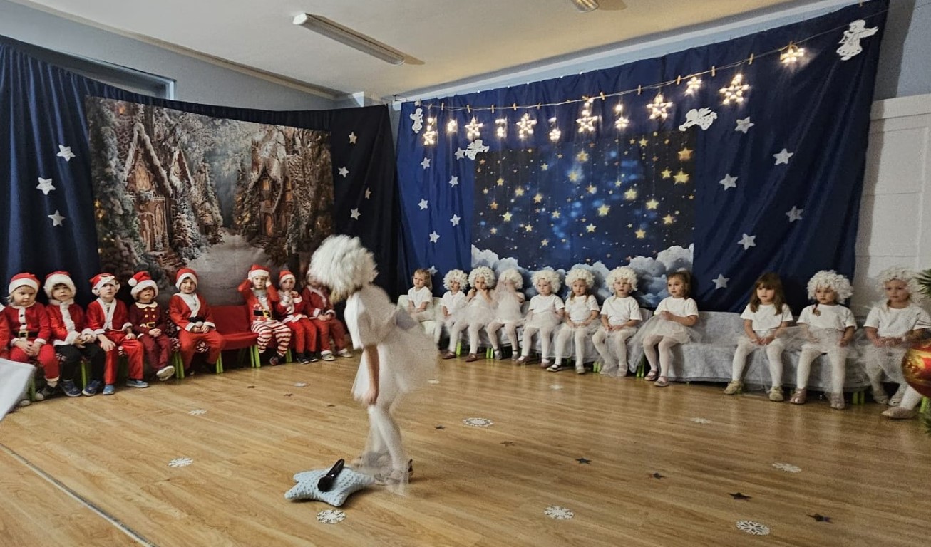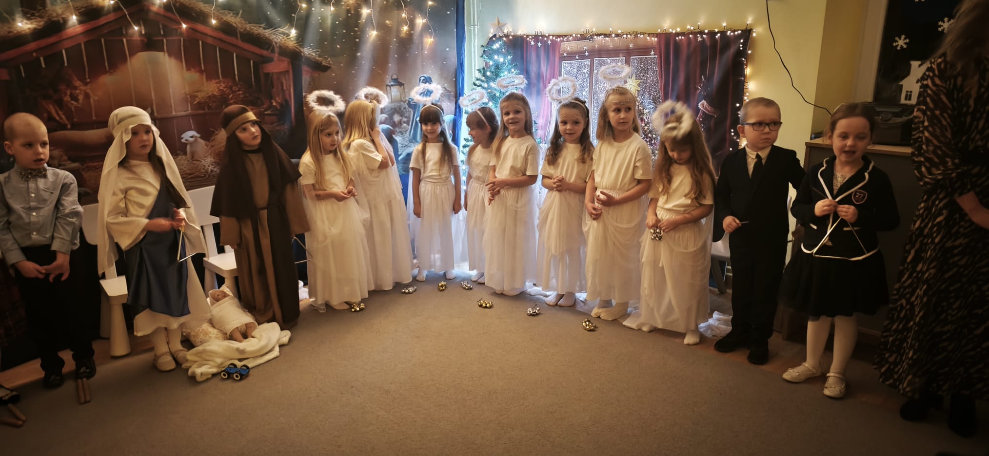 18 grudnia w naszym przedszkolu odbył się uroczysty występ jasełkowy w wykonaniu najstarszej grupy, przygotowany specjalnie dla rodziców. Dzieci z wielkim zaangażowaniem i radością zaprezentowały bożonarodzeniową inscenizację, wcielając się w swoje role i wprowadzając wszystkich w świąteczny nastrój. Piękne stroje, kolędy oraz recytowane kwestie zostały nagrodzone gromkimi brawami.