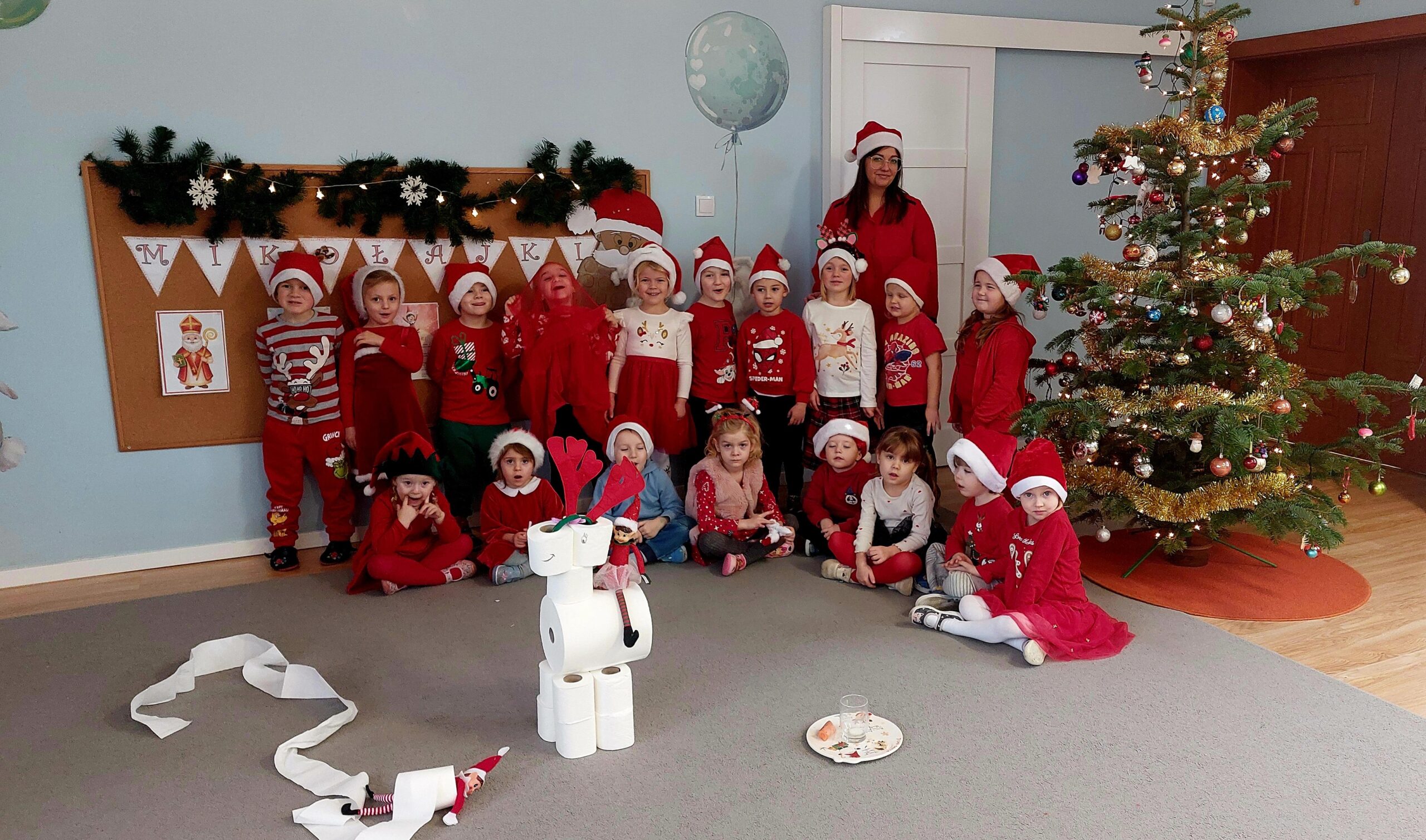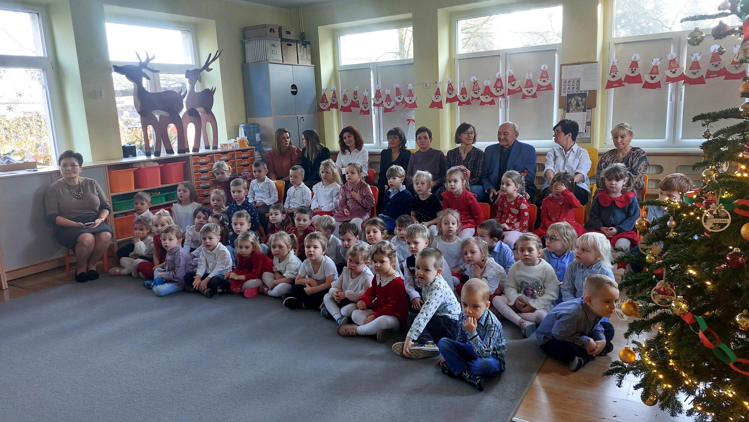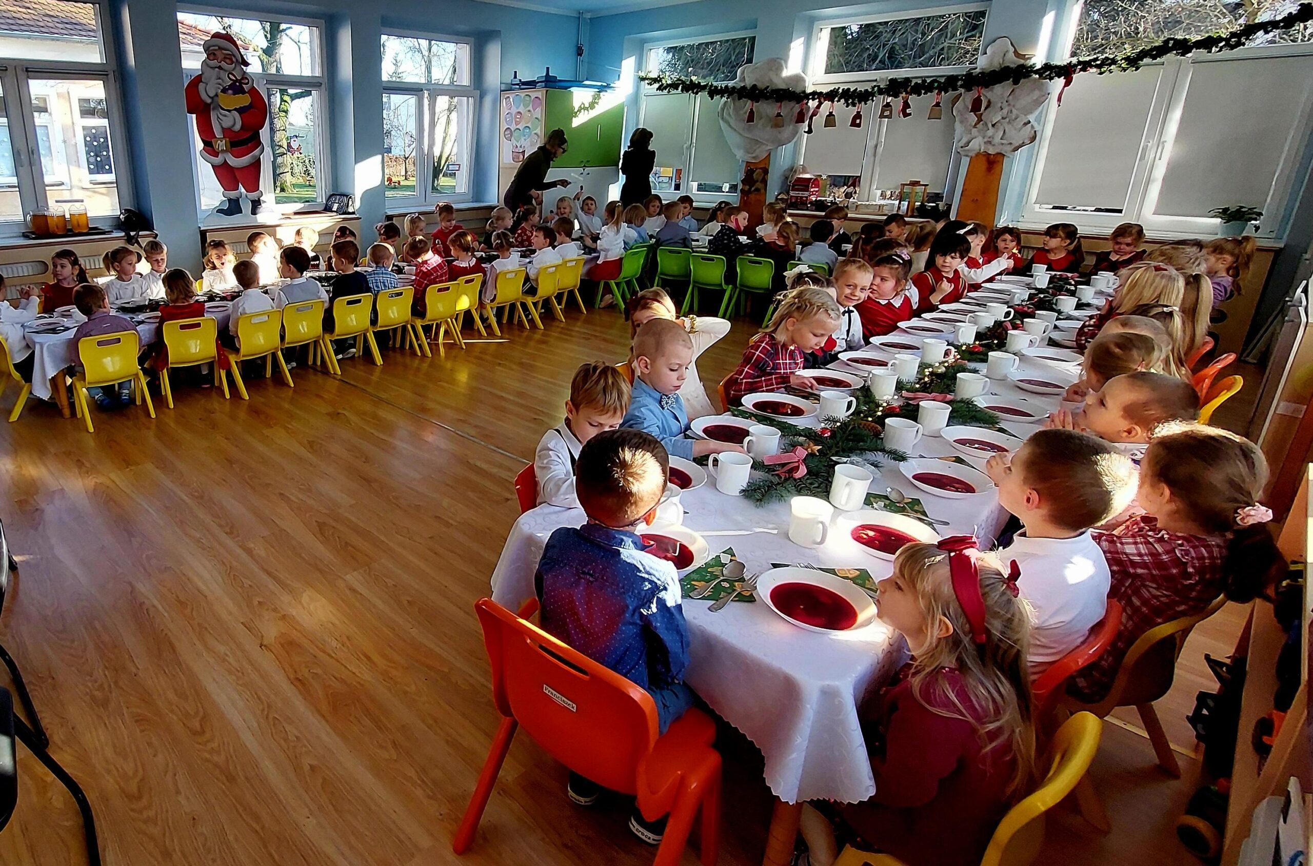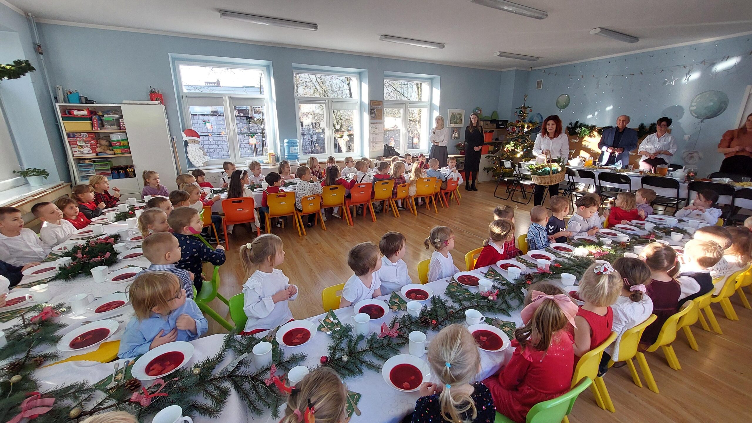 W dniu 19 grudnia w naszym przedszkolu odbyła się uroczysta Wigilia przedszkolna. Cała społeczność przedszkolna zasiadła przy wspólnym stole, aby podzielić się opłatkiem i złożyć sobie świąteczne życzenia. Pani Dyrektor skierowała do dzieci i pracowników serdeczne słowa, podkreślając wyjątkowy, świąteczny charakter tego spotkania.