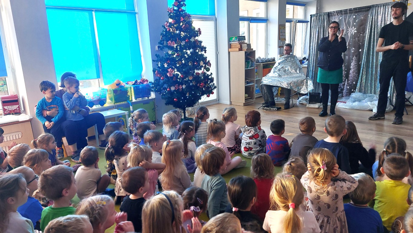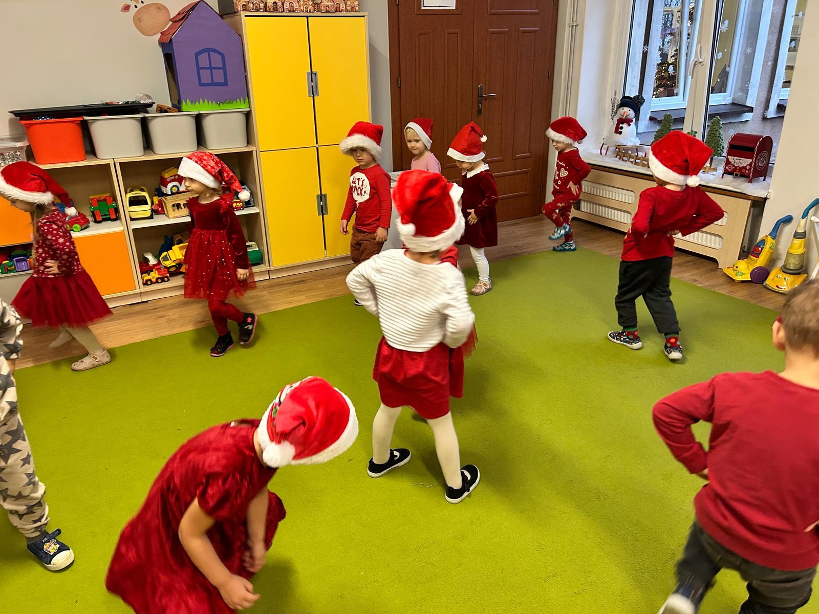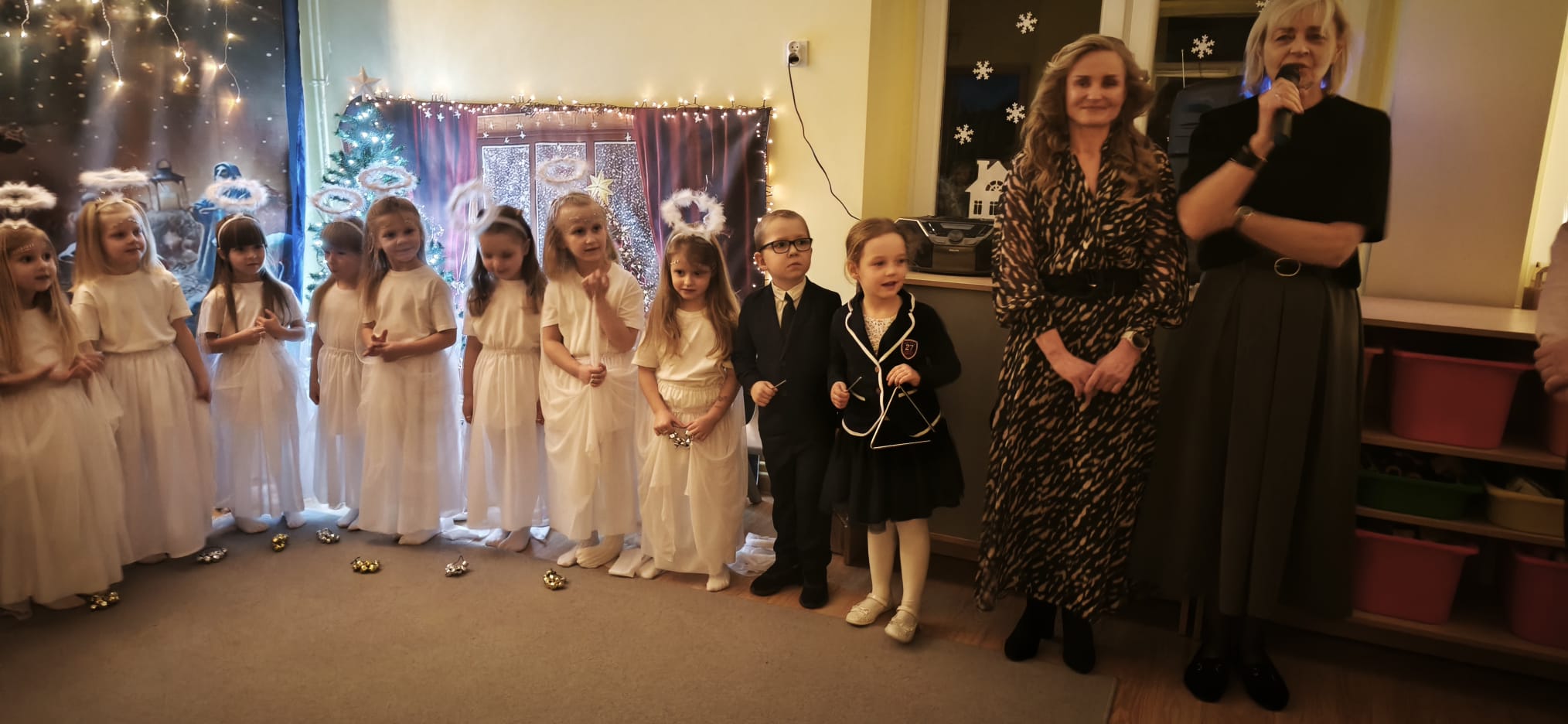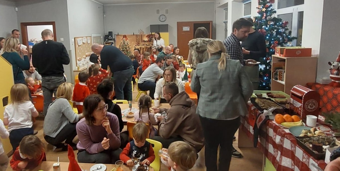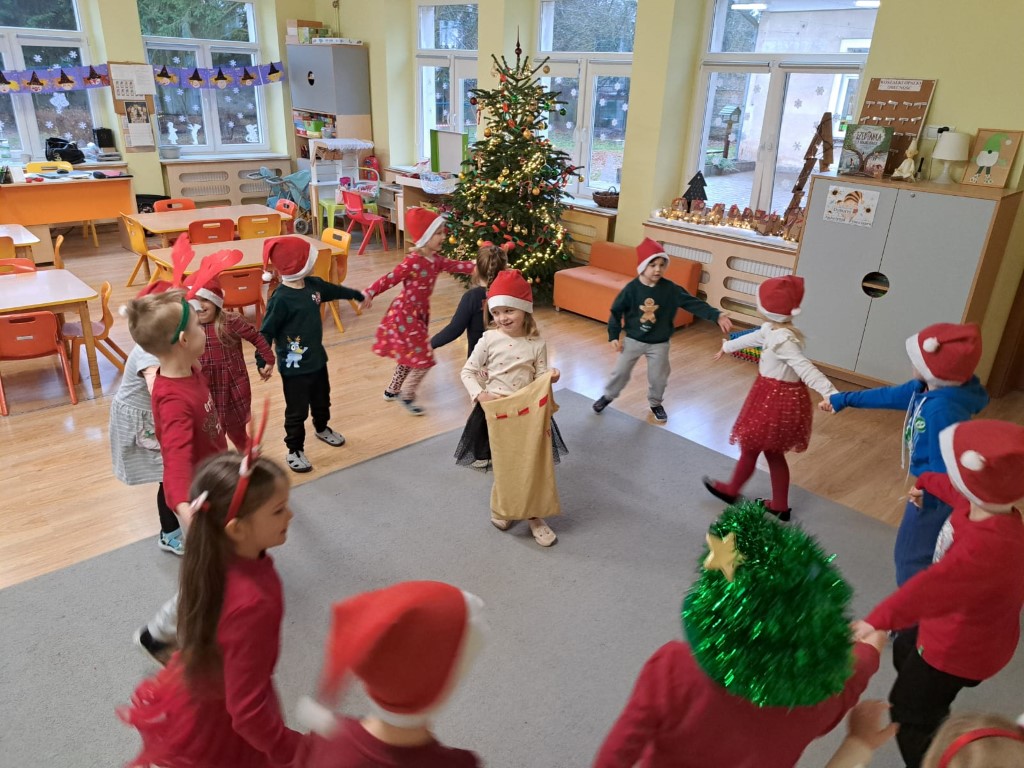 W dniu 19 grudnia w naszym przedszkolu odbyła się uroczysta Wigilia przedszkolna. Cała społeczność przedszkolna zasiadła przy wspólnym stole, aby podzielić się opłatkiem i złożyć sobie świąteczne życzenia. Pani Dyrektor skierowała do dzieci i pracowników serdeczne słowa, podkreślając wyjątkowy, świąteczny charakter tego spotkania.