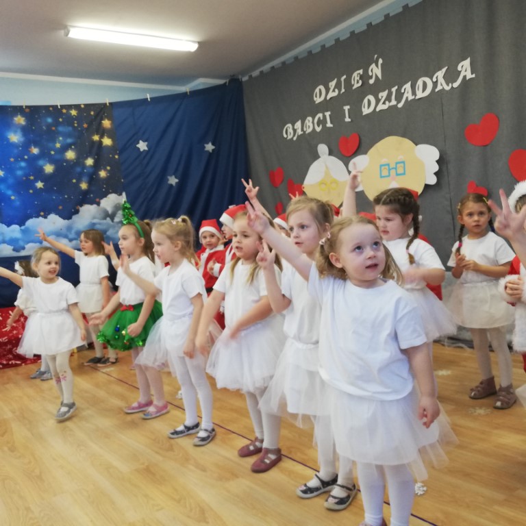 Z okazji Dnia Babci i Dziadka maluszki z grupy „Krasnale” zaprezentowały wyjątkowe zimowe przedstawienie, które wypełniło salę radością, uśmiechami i wzruszeniem. Najmłodsi z wielkim zaangażowaniem wystąpili przed swoją publicznością, prezentując przygotowane piosenki, wierszyki i układy ruchowe. Dla Babć i Dziadków był to niezapomniany moment – pełen dumy, miłości i wzruszeń, a dla dzieci wspaniała okazja do zaprezentowania swoich umiejętności oraz okazania wdzięczności najbliższym.