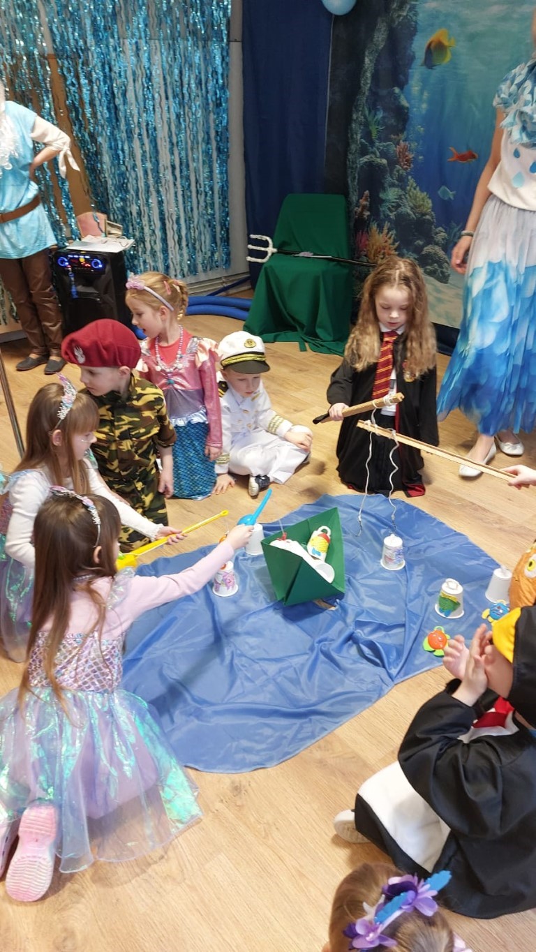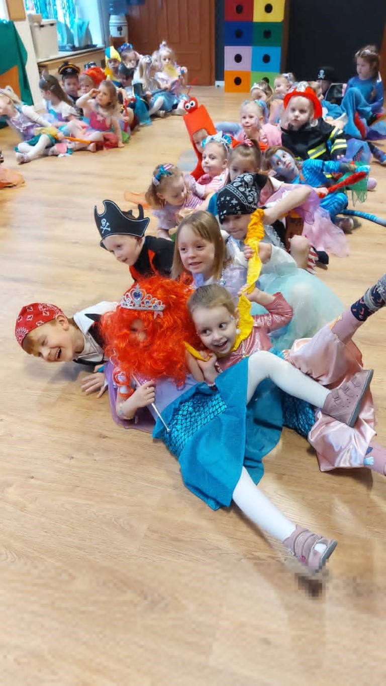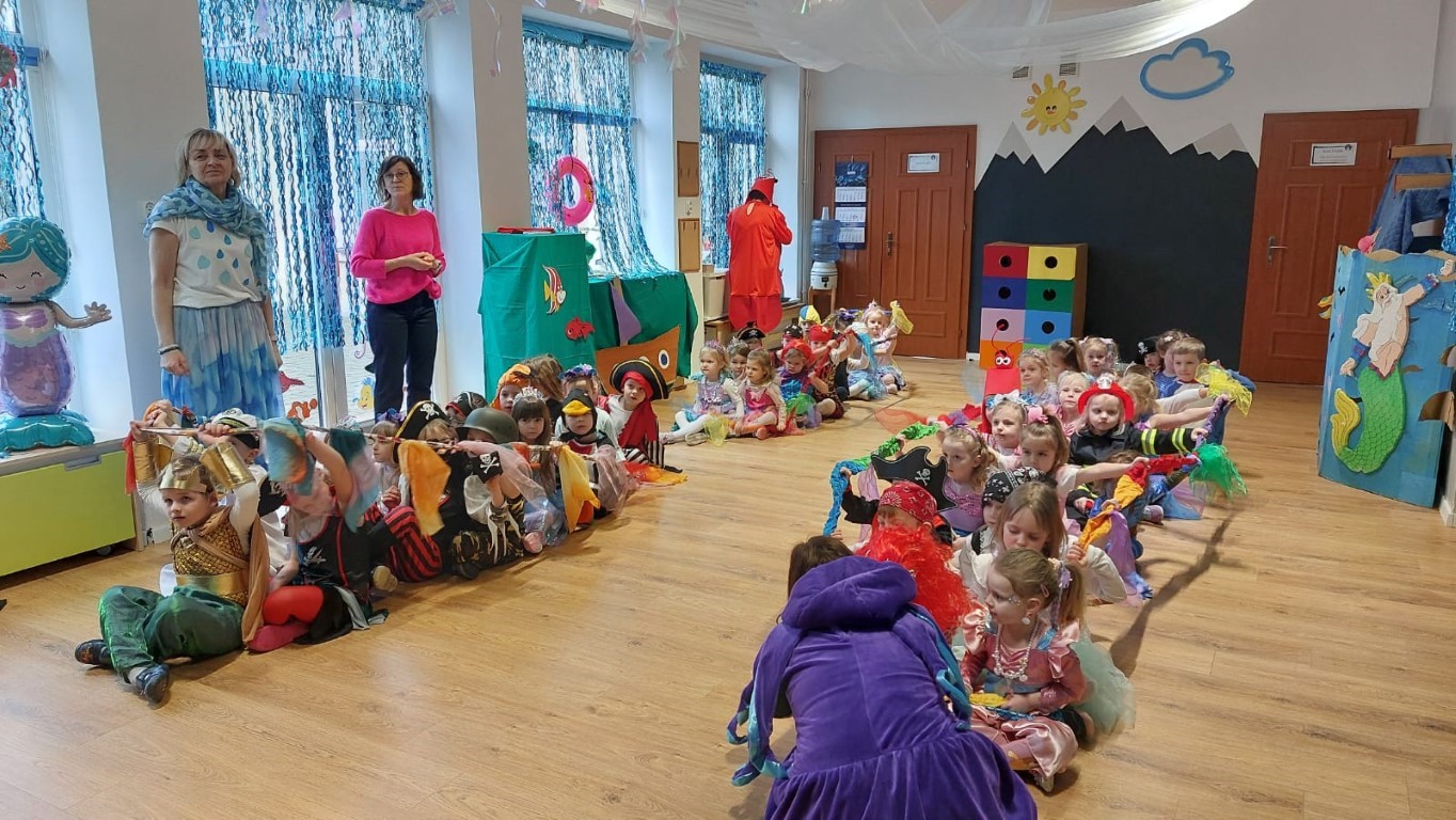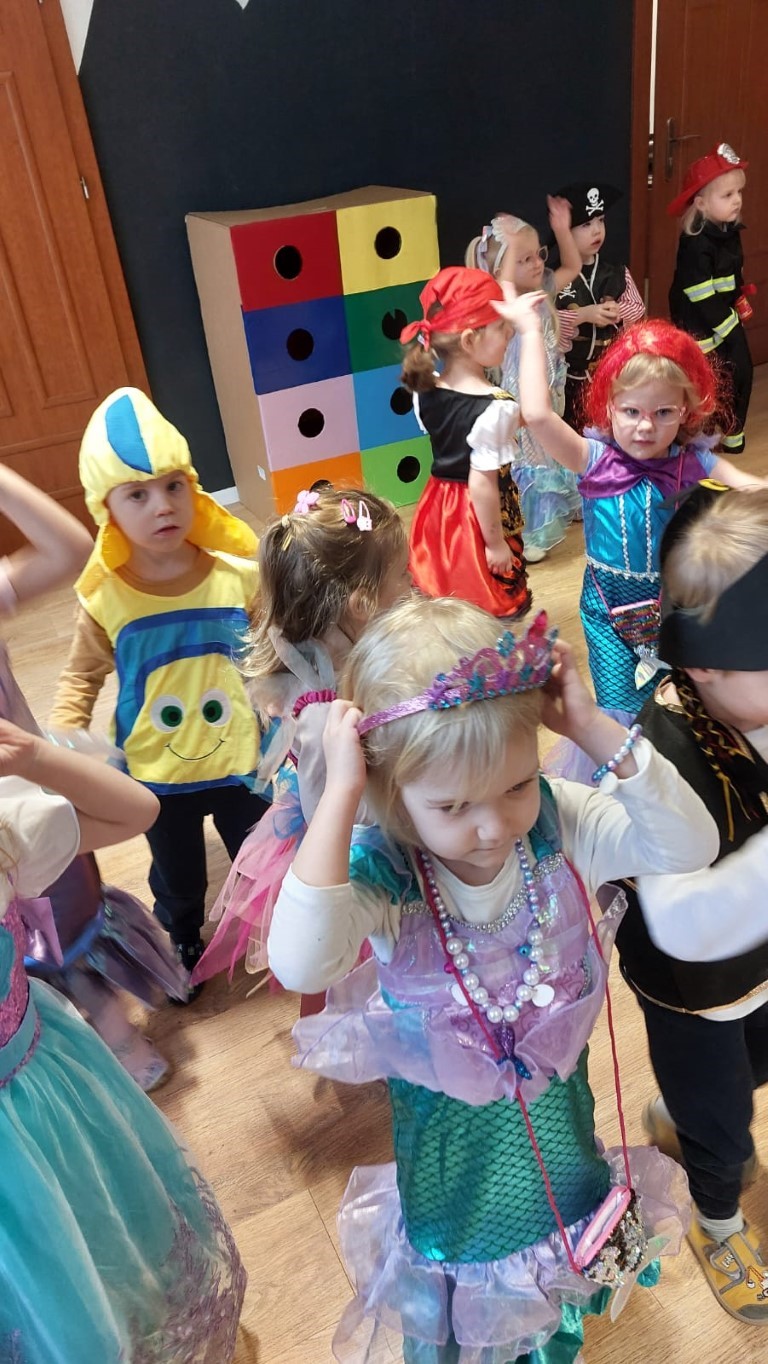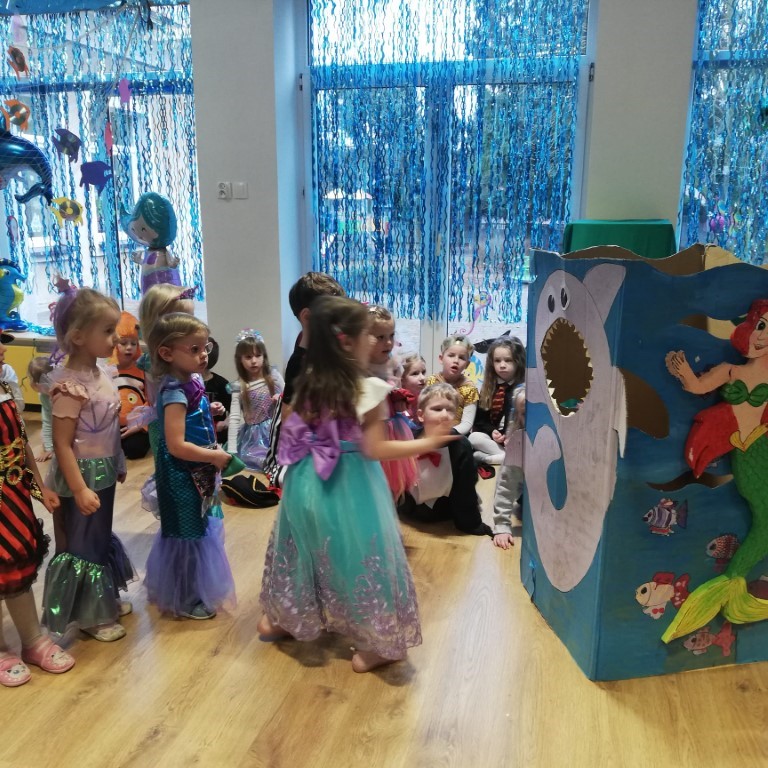 Wesołe skrzaty na zakończenie Karnawału zostały zaproszone na bal do władcy mórz i oceanów – Neptuna. Goście musieli pojawić się w strojach nawiązujących do tematyki morskiej. Pojawiło się wiele znakomitości z morskich głębin- Nemo, Syrenki, Kraby, Ośmiornice, Rekiny a nawet Piraci. Oj, działo się tam działo! Między tańcami goście popłynęli w rejs statkiem, łowili ryby, karmili rekina, zbierali plankton. W międzyczasie na uczcie w pałacu króla, zaserwowano między innymi jabłkowe łódeczki. Odbyły się wyścigi żółwi i pirackie zawody. A co najważniejsze wszyscy uczestnicy balu bawili się wspaniale, słychać było śmiechy, śpiewy i okrzyki radości.