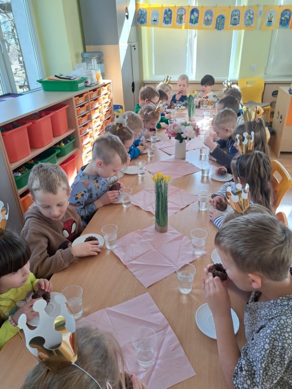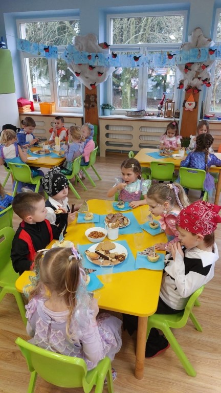 To był wyjątkowy dzień pełen uśmiechów i dobrej zabawy! Maluszki świętowały przy muzyce – tańczyły, bawiły się i cieszyły wspólnym czasem. Średniaki wyruszyły na ekscytującą grę terenową – prawdziwą „tajną misję”, podczas której poszukiwały skarbu przygotowanego specjalnie dla chłopców. Starszaki zamieniły się w małych cukierników i upiekły przepyszne smakołyki, które były słodkim zwieńczeniem tego dnia. Było wesoło, aktywnie i bardzo smacznie! Wszystkim naszym chłopcom jeszcze raz składamy najlepsze życzenia!