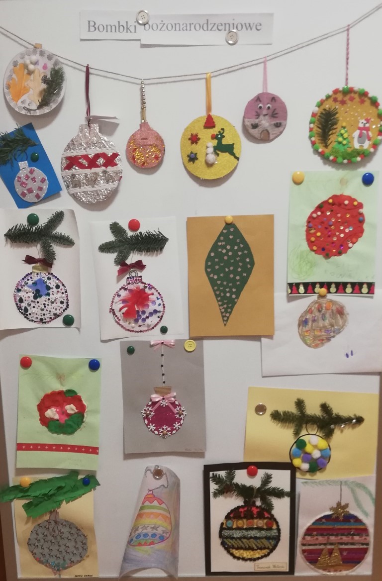 Konkurs plastyczny na projekt bombki cieszył się dużą popularnością wśród przedszkolaków. Prace dzieci były bardzo ciekawe, różnorodne i kreatywne. Jury zdecydowało, że wszystkie projekty i ich autorzy zasłużyli na nagrody. Zostały one wręczone laureatom podczas Wigilii przedszkolnej.