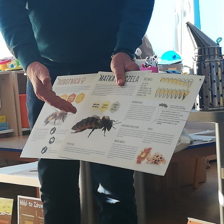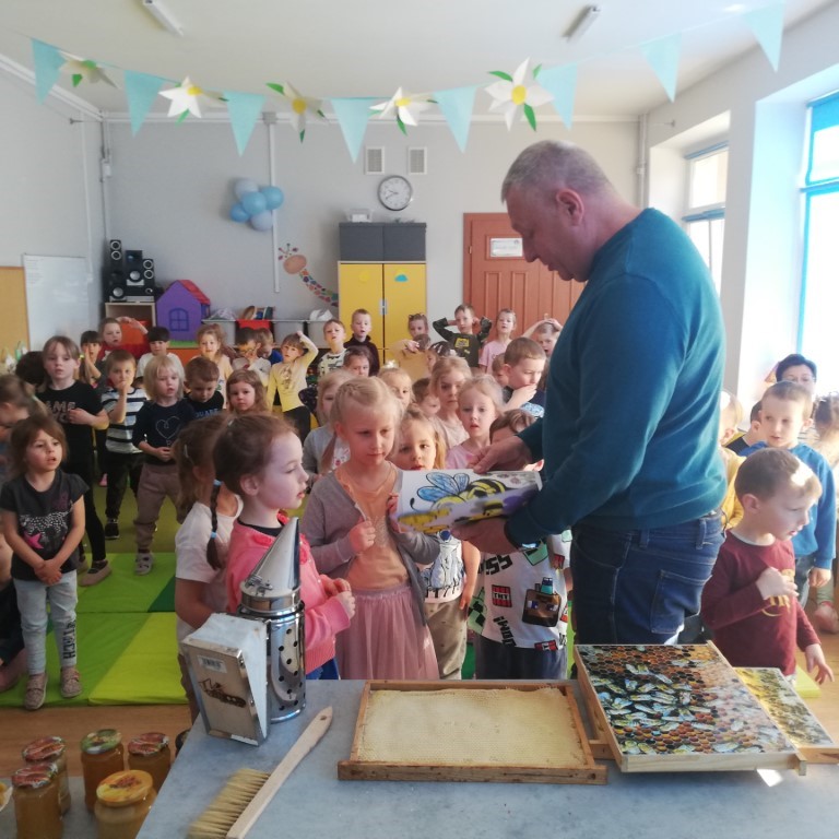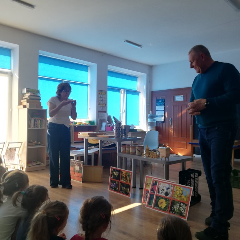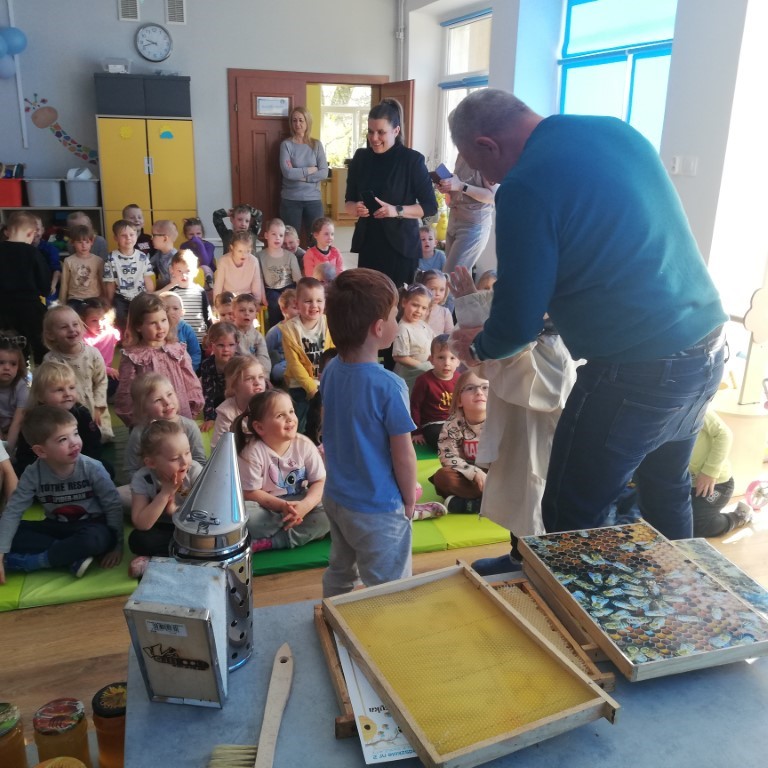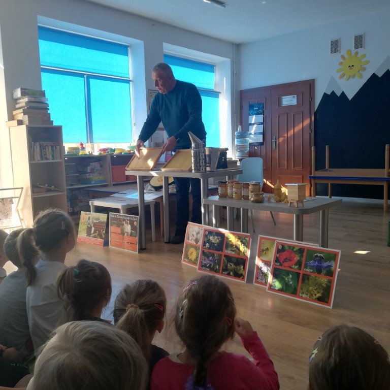 Jest to zawód mało znany, choć Polska jest liderem w Europie, jeśli chodzi o liczbę pszczelarzy i pasiek. Na nasze zaproszenie w celu przybliżenia tego zawodu, a może nawet misji odpowiedział pan Sławomir, który od wielu lat pasjonuje się pszczelarstwem. Przekazał nam wiele wiadomości o życiu i pracy pszczół, o pracy i narzędziach pracy pszczelarza. Dowiedzieliśmy się także, jak obecność pszczół w naszym środowisku jest ważna dla całego ekosystemu, a tym samym dla ludzi.