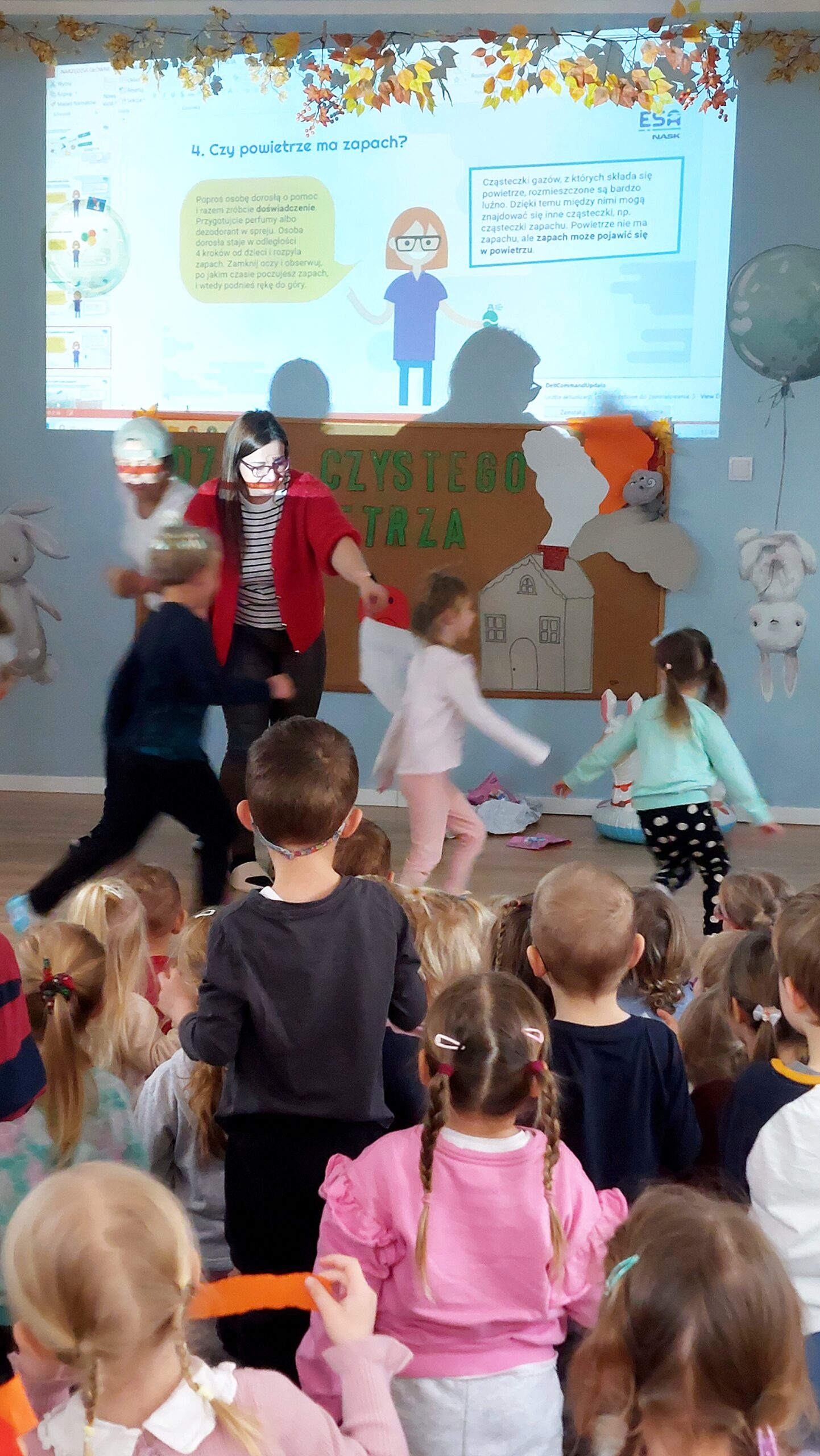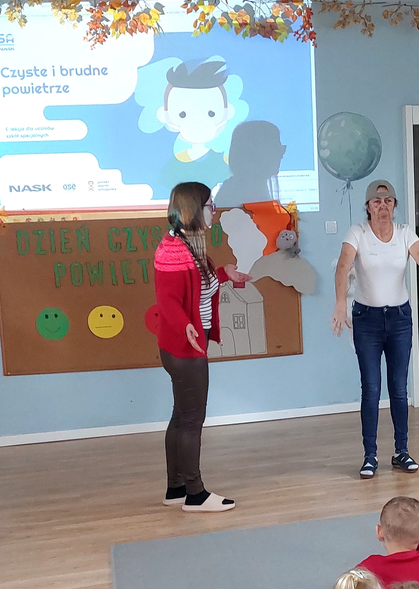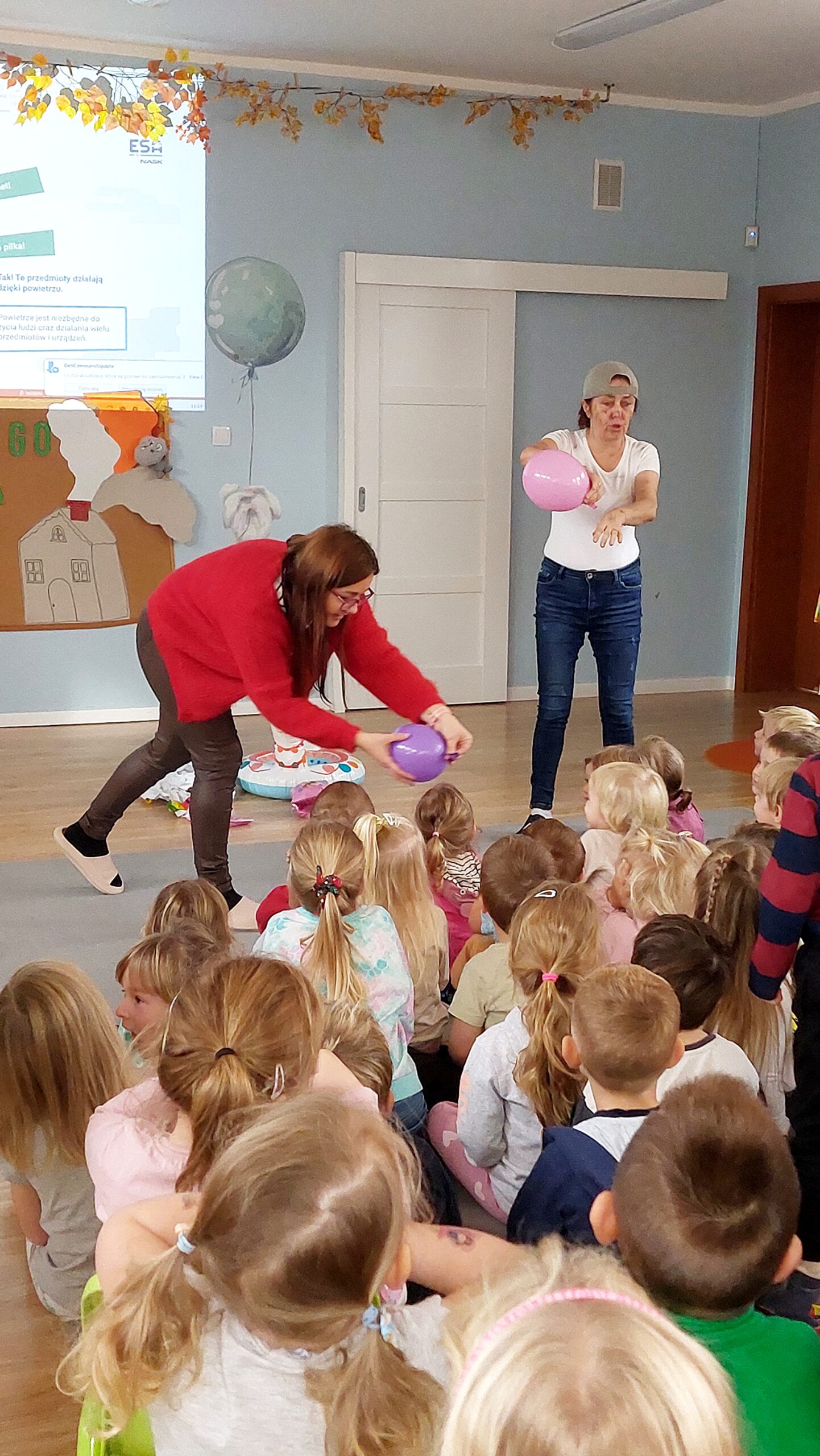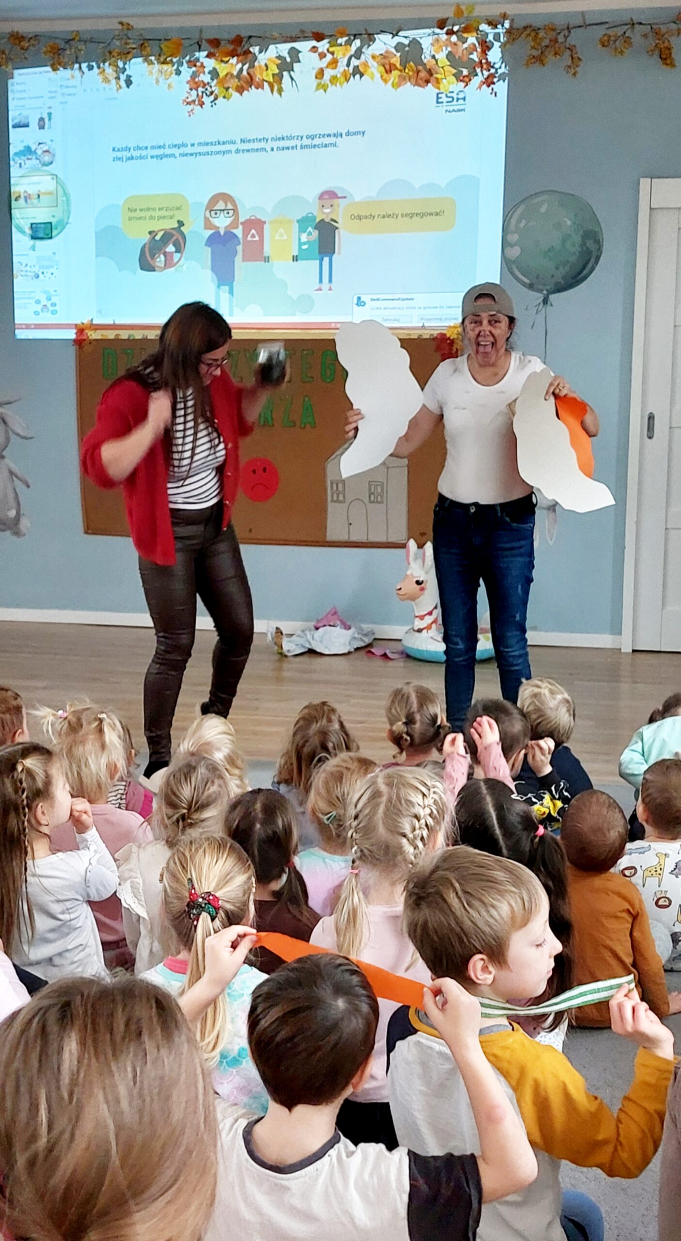 W ramach projektu antysmogowego EDUESA w naszym przedszkolu obchodziliśmy Dzień Czystego Powietrza. Z tej okazji na zajęciach pojawił się wyjątkowy gość – Felek, który przywędrował do dzieci cały brudny od zanieczyszczeń. Jego wygląd od razu wzbudził ciekawość, więc rozmawialiśmy dlaczego powinniśmy dbać o powietrze, którym oddychamy. Felek i dzieci dowiedziały się, czym właściwie jest powietrze, czy ma zapach, kiedy jest naprawdę czyste oraz skąd bierze się smog. Przedszkolaki aktywnie włączały się w rozmowę, chętnie odpowiadały na pytania i dzieliły się swoimi spostrzeżeniami. Była to bardzo dobra okazja, aby uświadomić dzieciom, że każdy z nas może dbać o czyste powietrze, a nawet drobne działania mają znaczenie dla środowiska.