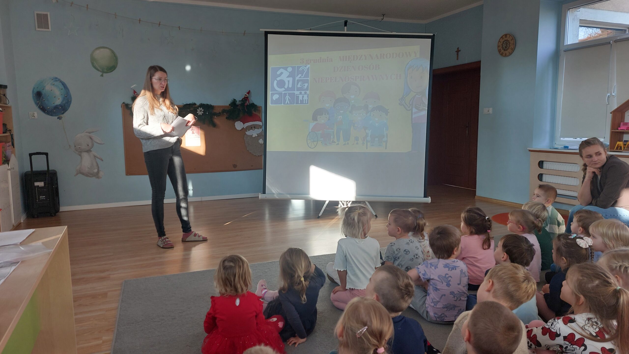 3 grudnia pani pedagog przeprowadziła zajęcia, podczas których dzieci w przystępny i zrozumiały sposób poznały, czym jest różnorodność oraz dlaczego tak ważne jest okazywanie empatii i szacunku każdemu człowiekowi. Podczas zajęć przedszkolaki uczestniczyły w rozmowach, obejrzały krótkie filmiki, które pozwoliły im spojrzeć na świat oczami innych osób, a także zrozumieć, jak możemy wspierać i pomagać tym, którzy tego potrzebują. To było wartościowe i pouczające spotkanie, pełene życzliwości, otwartości i wzajemnego zrozumienia.