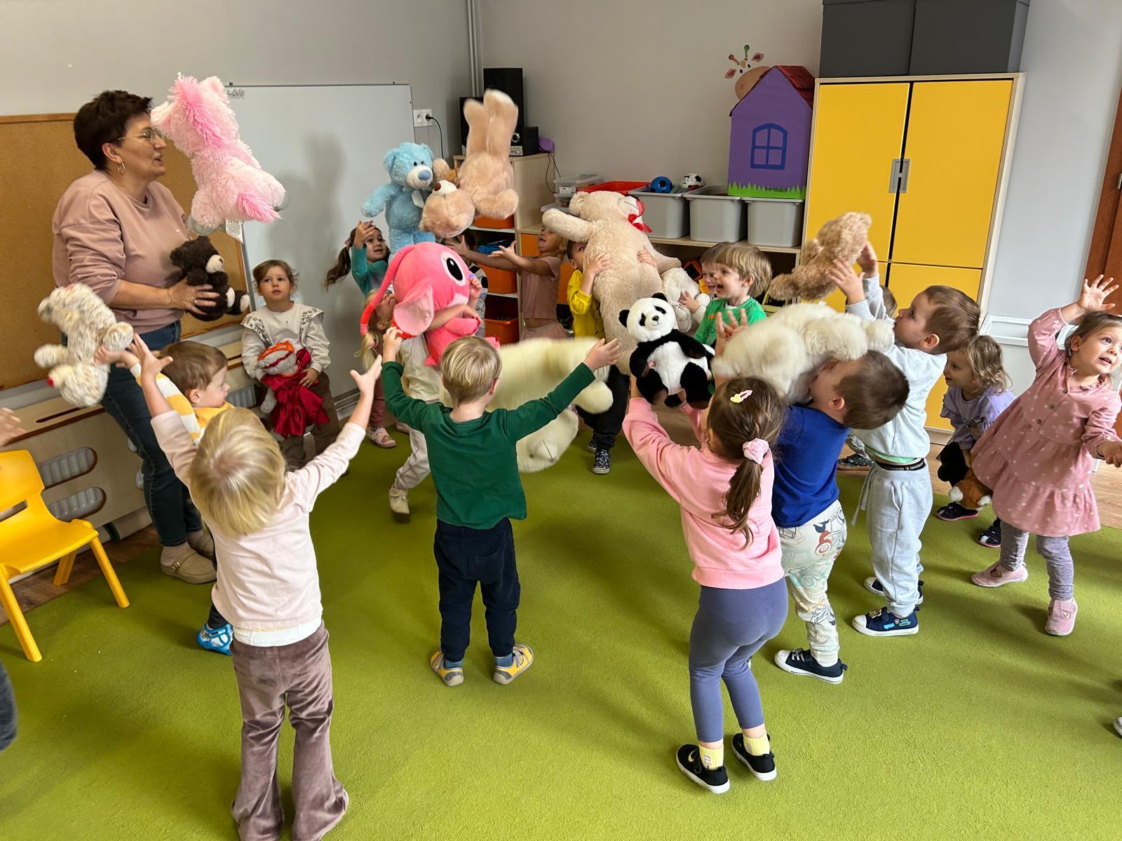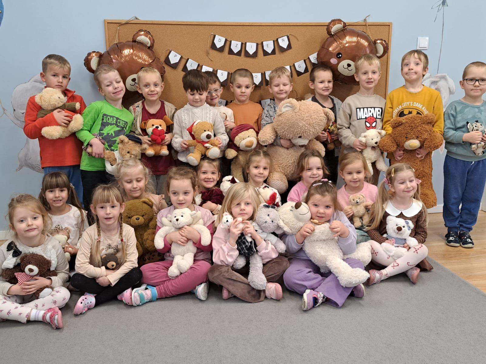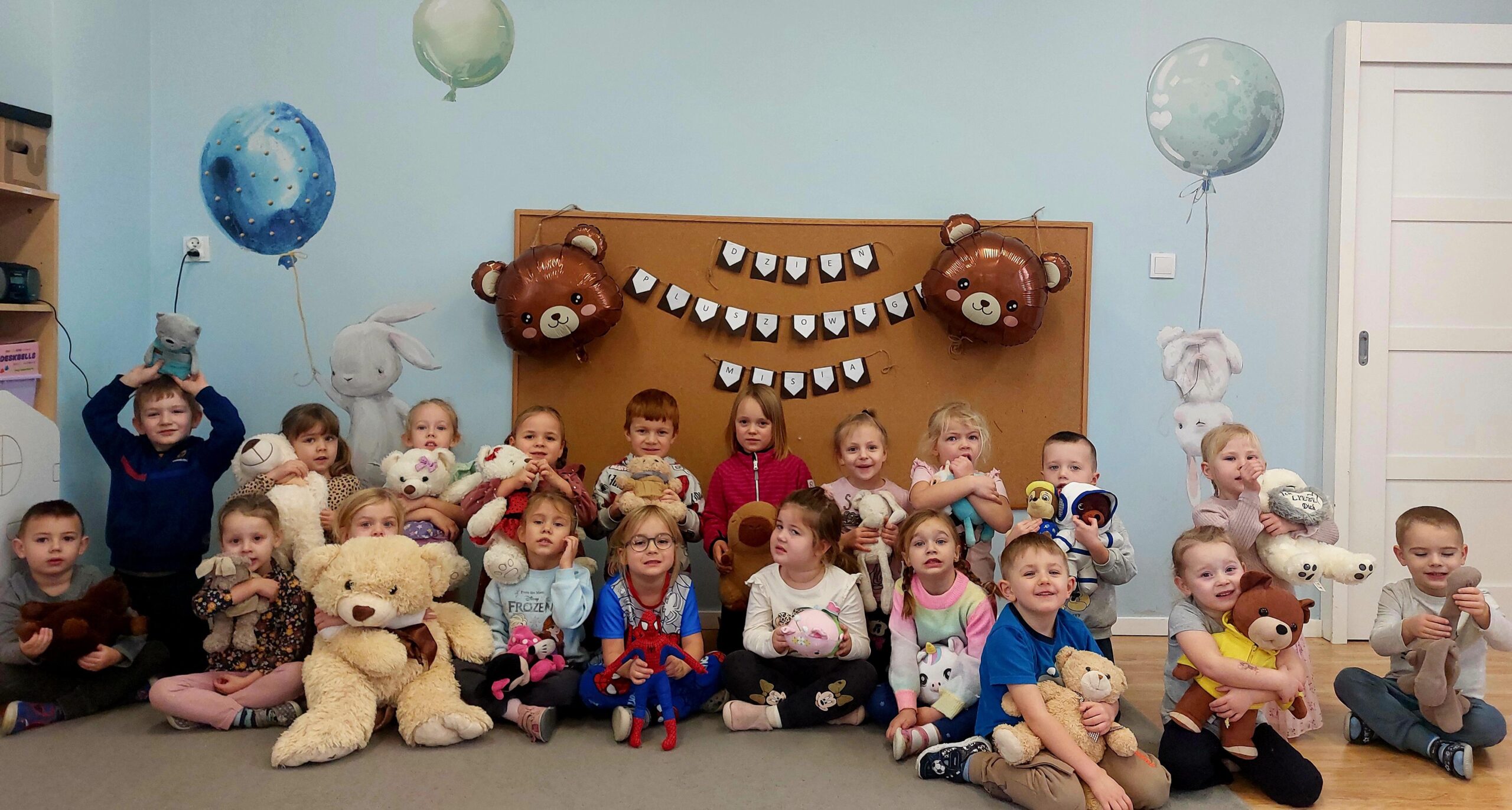 25 listopada swoje święto mają pluszowe misie, tego dnia dzieci przyniosły do przedszkola swoje ulubione misie, które towarzyszyły im cały dzień. Poranek rozpoczęliśmy poranną gimnastyką z misiem, która pozwoliła nam się rozruszać, a pluszowi przyjaciele dzielnie towarzyszyli dzieciom w podskokach, skłonach i ćwiczeniach. Nie zabrakło także zabaw dydaktycznych, podczas których dzieci uczyły się poprzez działanie i współpracę. Rozwiązywaliśmy misiowe zagadki, segregowaliśmy misie według wielkości i koloru, liczyliśmy puchate przytulanki oraz rozmawialiśmy o tym, skąd wzięło się to sympatyczne święto.