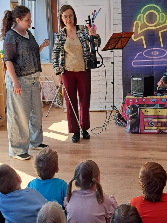 Marcowy koncert Klubu Małego Muzyka wprowadził wszystkich w radosny nastrój. Dzieci poznały nowy instrument, jakim są elektryczne skrzypce. Dowiedziały się także na czym polega praca DJ-a. Świetnie się bawiły przy utworach wykonywanych przez muzyków, głównie dlatego, że były im znane.