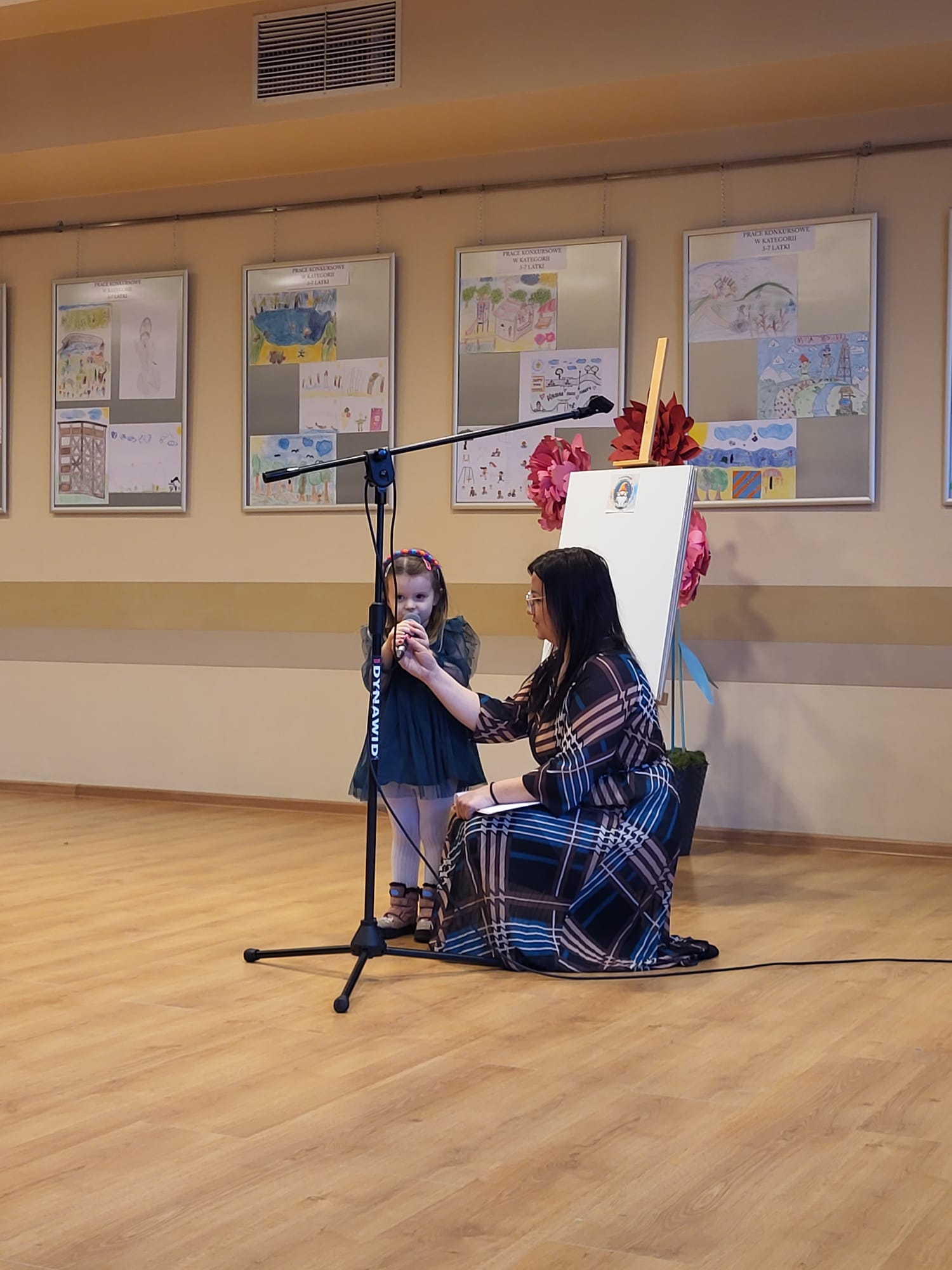 Wydarzenie zgromadziło liczne grono dzieci oraz ich rodziców, tworząc ciepłą i radosną atmosferę wspólnego świętowania dziecięcej twórczości. Program wernisażu był bogaty w różnorodne atrakcje. Uczestnicy mogli sprawdzić swoją wiedzę o Mosinie podczas quizu tematycznego, który wzbudził wiele emocji i zaangażowania. Szczególnym momentem były występy najmłodszych – „małe skrzaty” zaprezentowały wiersze poświęcone Mosinie, zachwycając publiczność swoją wrażliwością i odwagą sceniczną.