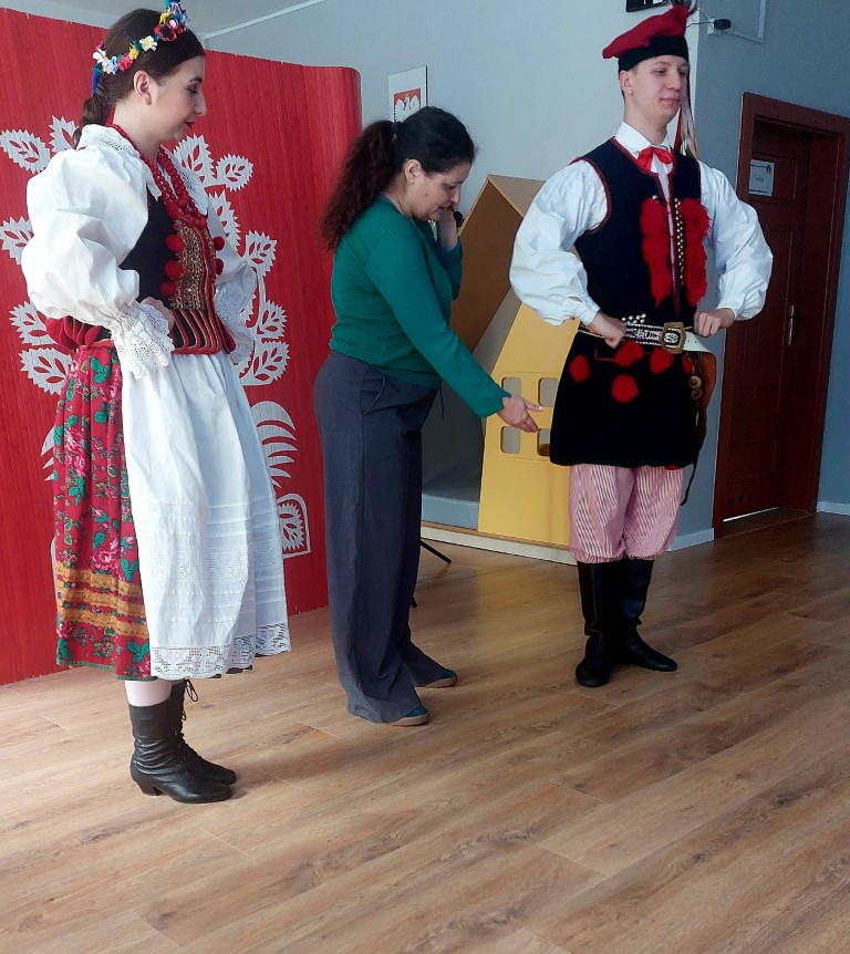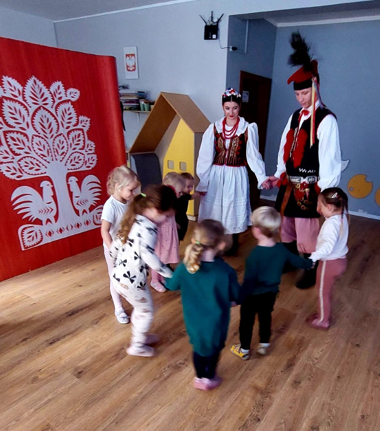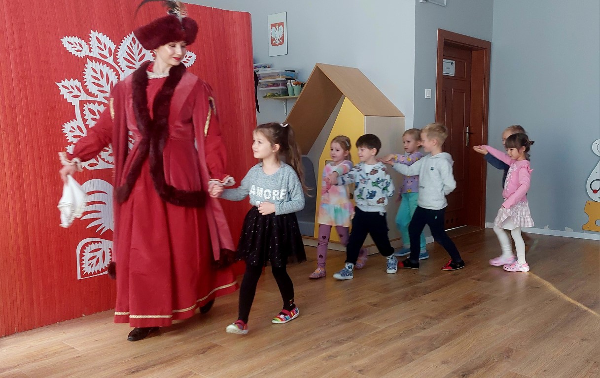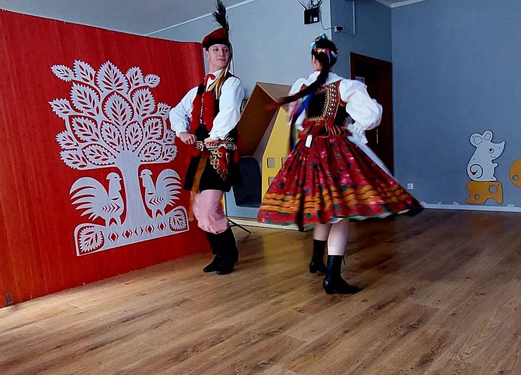 Podczas spotkania z Klubem Małego Muzyka dzieci przeniosły się w świat polskich tradycji tanecznych. W ramach programu „Poloneza czas zacząć” zaprezentowano tańce narodowe, dzieci mogły nie tylko podziwiać ich wykonanie, ale także zatańczyć. Dużym zainteresowaniem cieszyła się również prezentacja tradycyjnego stroju ludowego. Przedszkolaki zobaczyły jego charakterystyczne elementy oraz wzory.