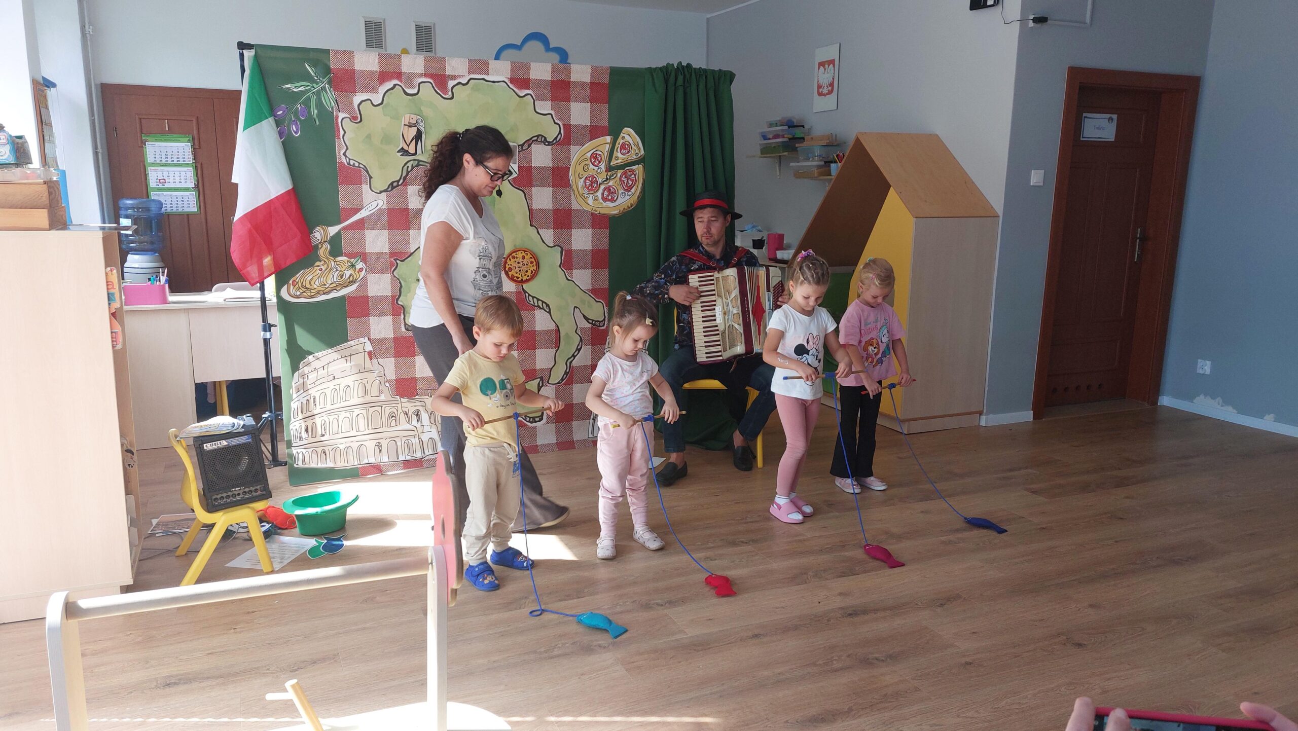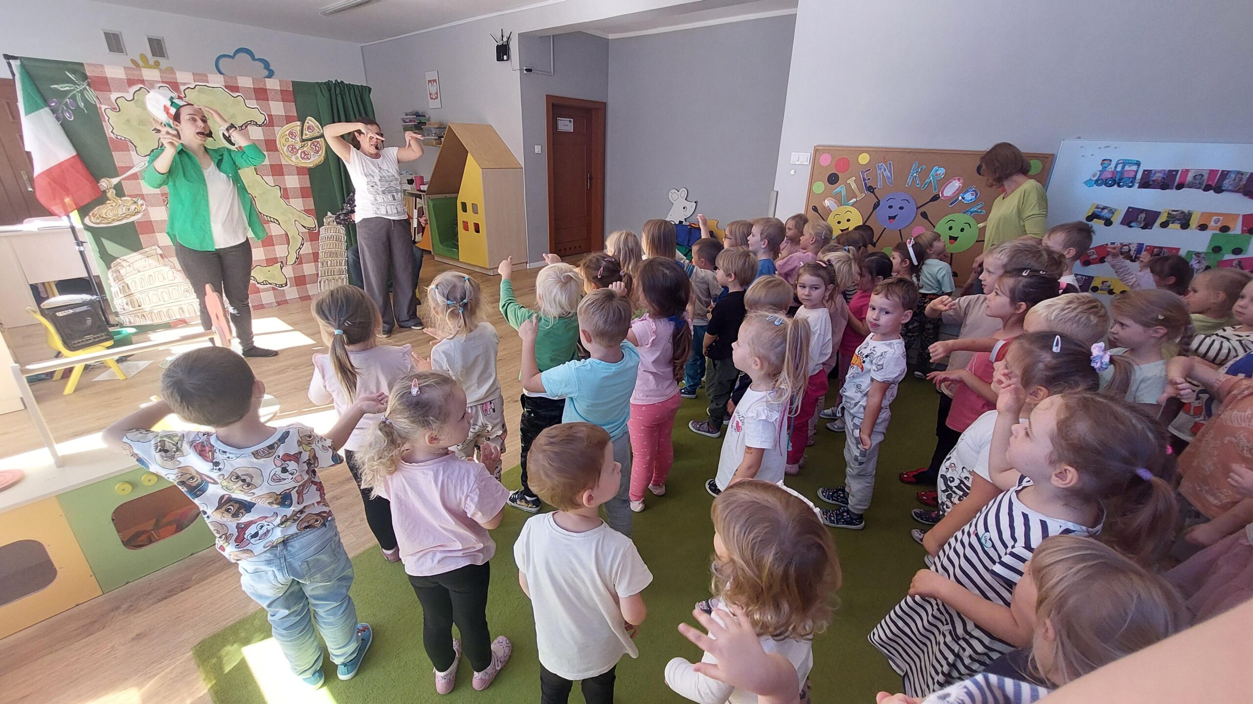 W środę odwiedził nas Klub Małego Muzyka i zabrał w podróż do słonecznej Italii! Podczas koncertu przedszkolaki poznały wyjątkowe miejsca na mapie tego pięknego kraju. Dzieci mogły nie tylko posłuchać włoskich dźwięków, ale również poznać atrybuty, znaki rozpoznawcze tamtejszych terenów. Nie obyło się bez drobnej konkurencji we wciąganiu ryby na wędkę czy tańców do włoskiej muzyki.