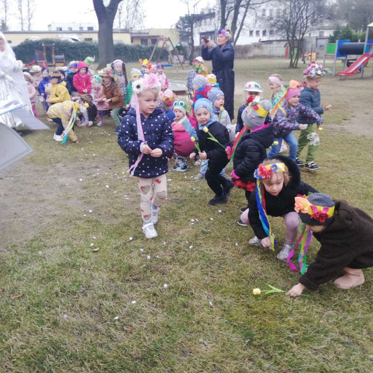 Wreszcie nadeszła długo wyczekiwana Wiosna. Najpierw musieliśmy jednak pożegnać Zimę, która niechętnie nas opuszczała. Pani Wiosna niestety nie przyniosła nam pięknej, słonecznej pogody. Ale od wieków wiadomo, że: „W marcu jak w garncu”. My pomimo to świetnie się bawiliśmy rozgrzewając się tańcem, ruchem i dobrym humorem.