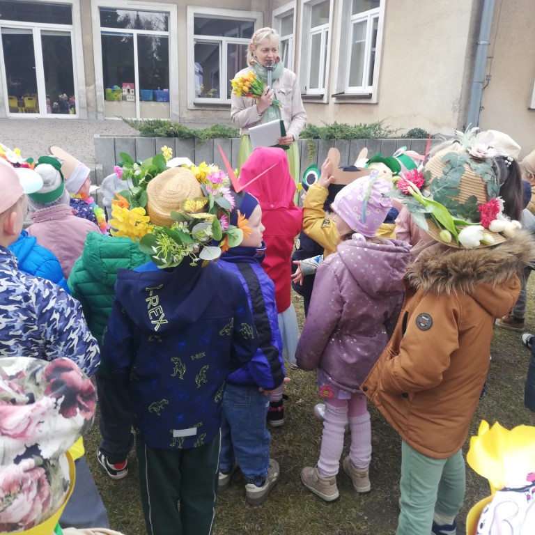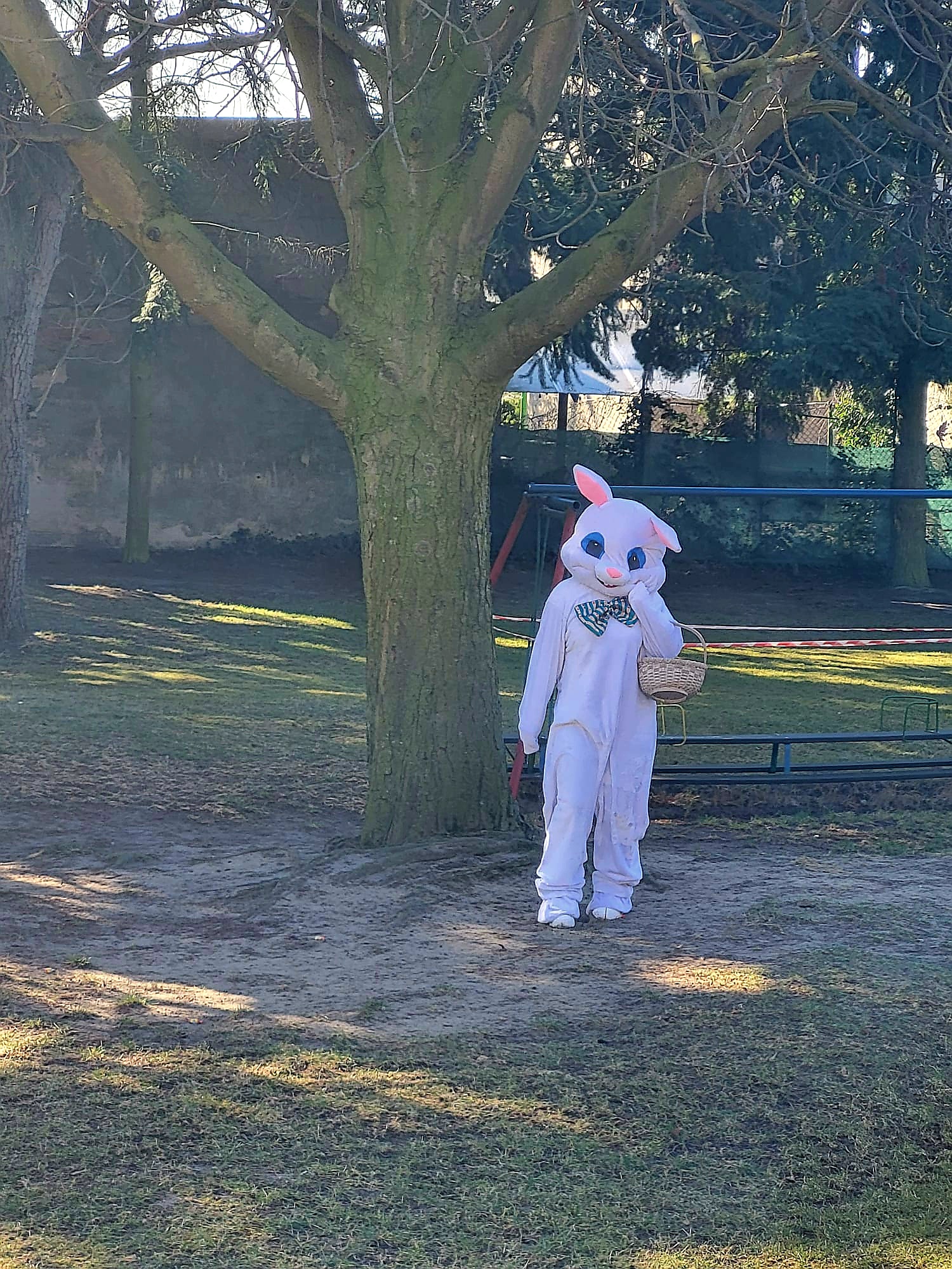 Największą radość sprawiła jednak wizyta samego zajączka wielkanocnego, który pojawił się na placu. Na zakończenie zostawił dla wszystkich drobne upominki, wywołując wiele uśmiechów i radosnych emocji.