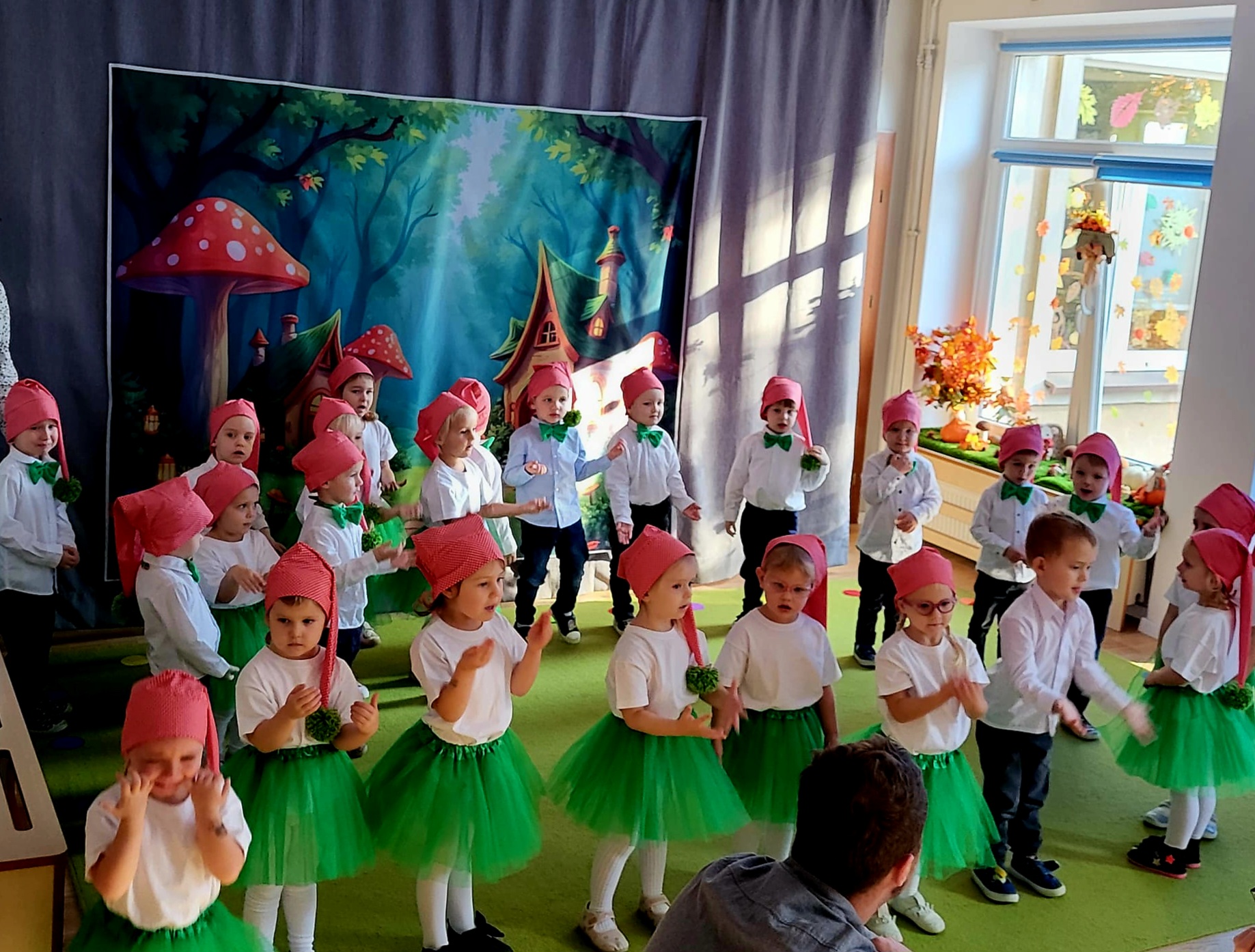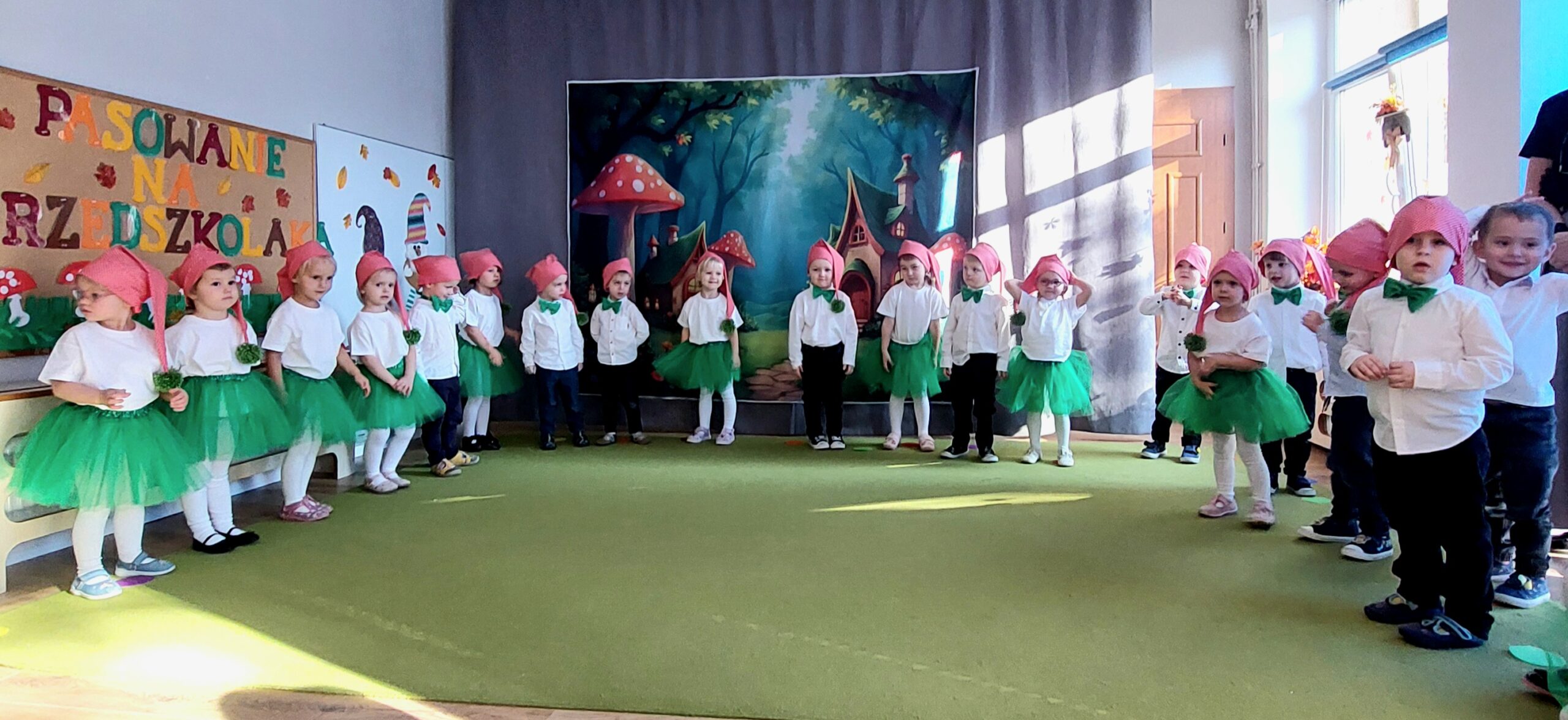 To był wyjątkowy i bardzo wzruszający dzień dla naszych najmłodszych przedszkolaków! W sali rozbrzmiewały dźwięki piosenek, śmiech i brawa – wszystko za sprawą uroczystości Pasowania na Przedszkolaka. Krasnale w pięknych strojach zaprezentowały swój pierwszy występ artystyczny. Z ogromnym zaangażowaniem recytowały wierszyki, śpiewały piosenki i tańczyły, pokazując, jak wiele już potrafią .