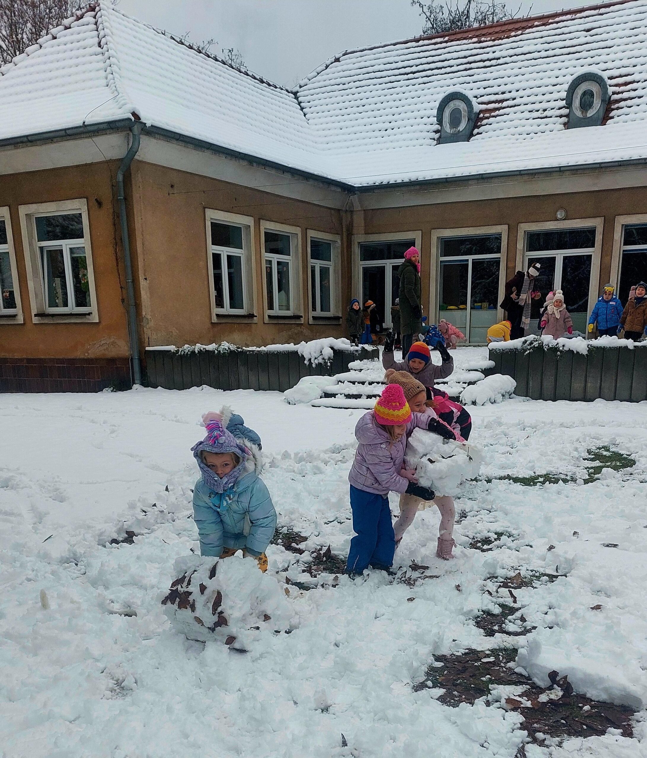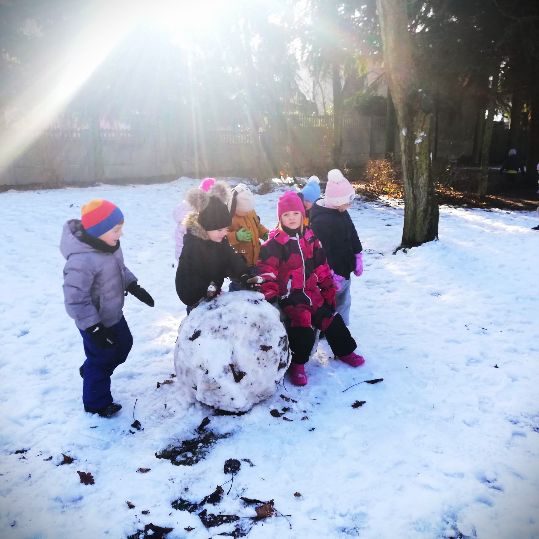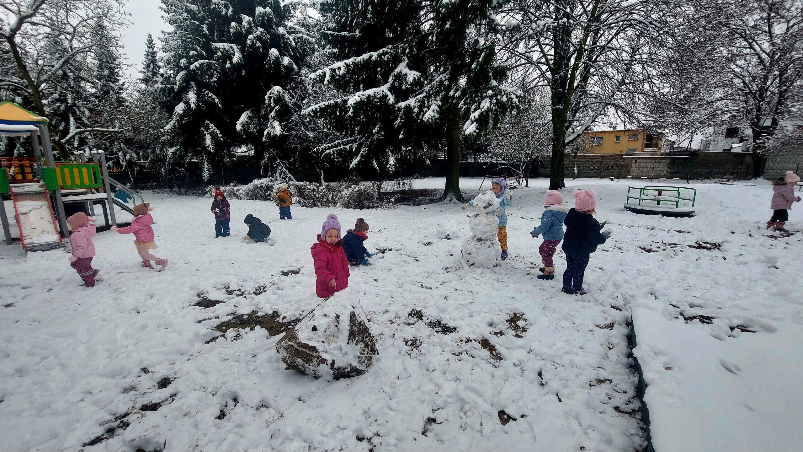 W listopadzie spadł pierwszy śnieg, który od razu wywołał ogromną radość wśród dzieci. Wesołe Skrzaty od samego rana nie mogły doczekać się, aby korzystać z białego puchu. Wspólnie lepiły bałwana, toczyły śnieżne kulki i tworzyły zimowe budowle, świetnie się przy tym bawiąc. Śmiech i radosne okrzyki wypełniły cały plac zabaw, a pierwszy śnieg zamienił zwykły dzień w prawdziwą zimową przygodę.