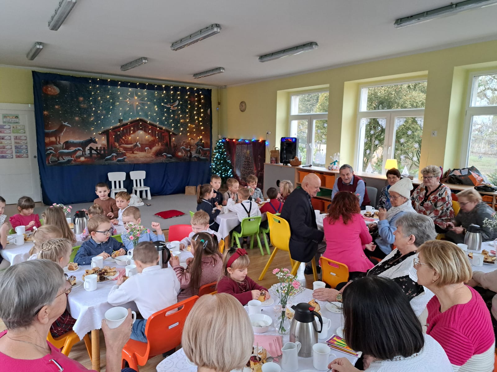 Po zakończonym występie rodzice i dzieci zostali zaproszeni na wspólny poczęstunek. Przy filiżance kawy i kawałku ciasta był czas na rozmowy, integrację oraz dzielenie się wrażeniami po przedstawieniu, który stworzył miłą i ciepłą atmosferę.