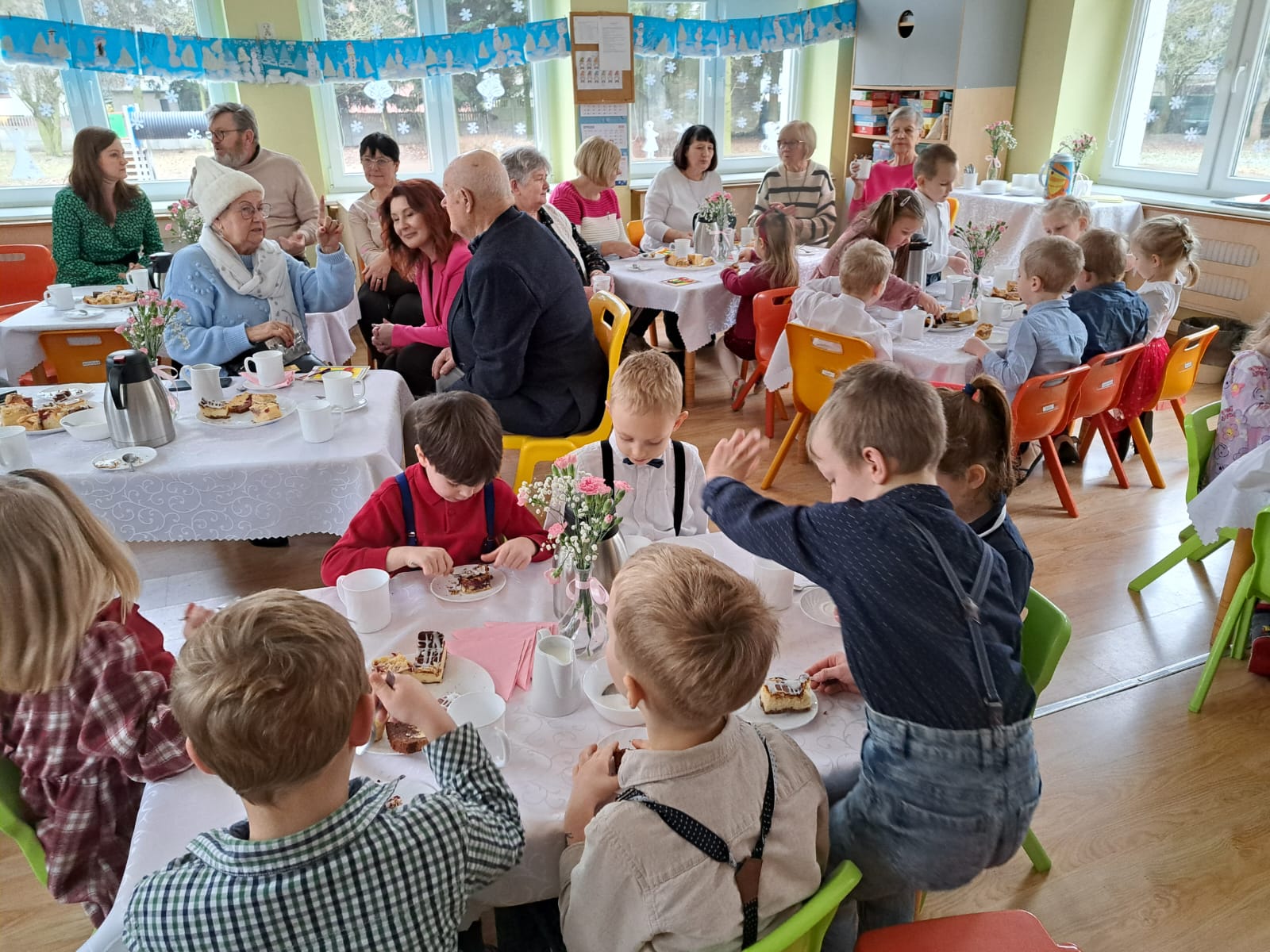 Po części artystycznej przyszedł czas na wspólne rozmowy przy kawie oraz słodkościach – pysznych ciastach przygotowanych na tę okazję. Było to ciepłe i pełne radości spotkanie z rodzicami.
