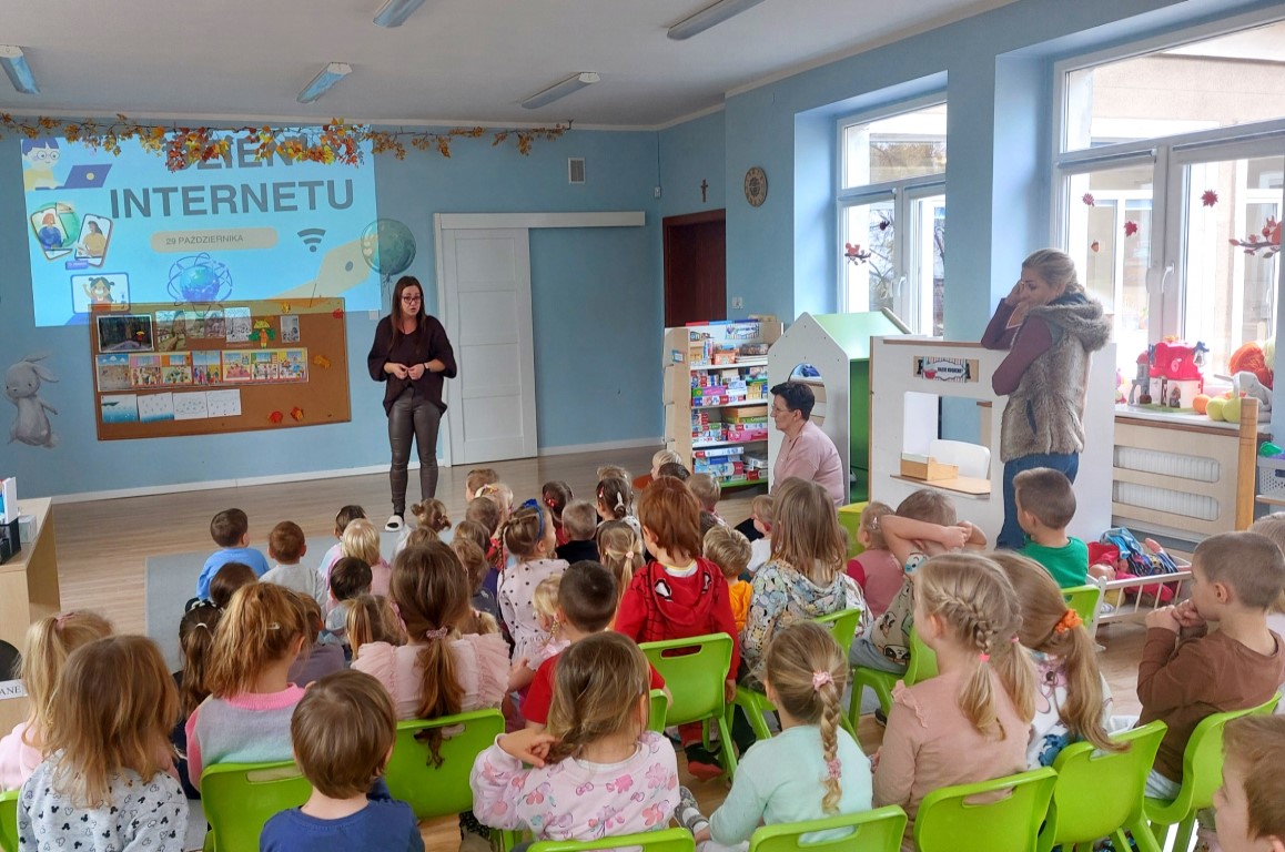Z okazji Światowego Dnia Internetu nasze przedszkolaki wzięły udział w zajęciach poświęconych bezpiecznemu korzystaniu z Internetu. Podczas wspólnej zabawy i rozmowy dzieci dowiedziały się, czym jest Internet, do czego można go wykorzystać oraz jak dbać o swoje bezpieczeństwo w sieci.