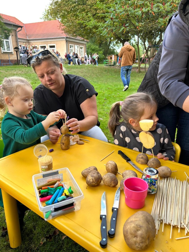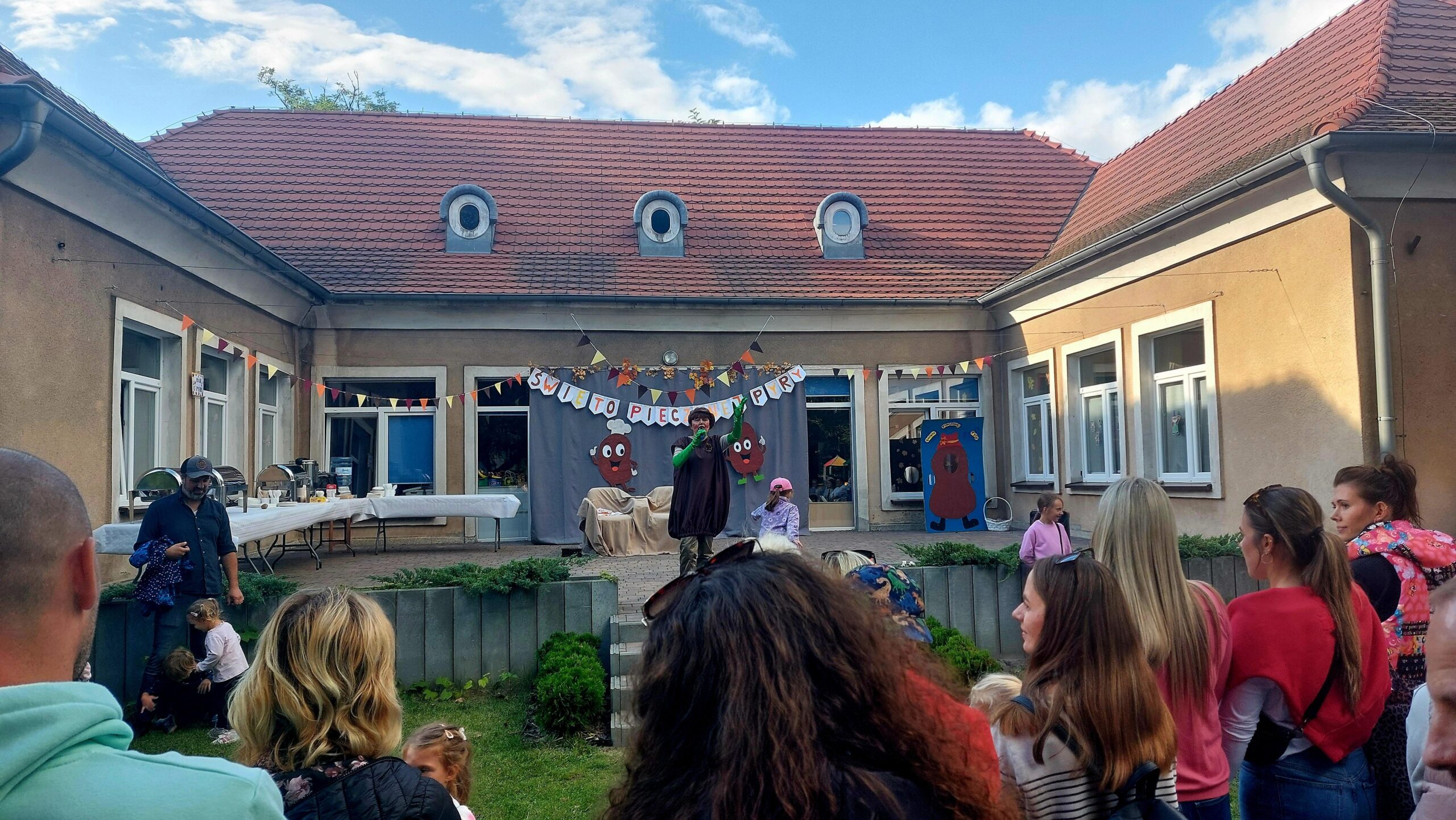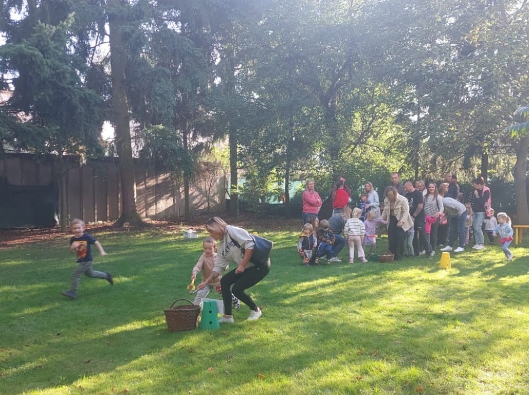 Uśmiech, humor i zabawa to jest najważniejsza sprawa. Te cechy przyświecały naszemu Festynowi Rodzinnemu, zorganizowanemu z okazji „Powitania Jesieni”. „Święto Pieczonej Pyry”, bo taką nazwę miała nasza impreza, odbyło się na terenie naszego pięknego ogrodu 23 września. Oprócz różnego rodzaju zawodów i zabaw, bawiliśmy się także gwarą poznańską. Okazało się, że część rodziców doskonale wie, co to bana, rojber czy węborek. W trakcie festynu można było posilić się potrawami głównie z pyr, ale nie tylko, w „Barze u Pyry”. Wszystkie te pyszności przygotowali nasi wspaniali i niezawodni Rodzice, za co serdecznie dziękujemy!